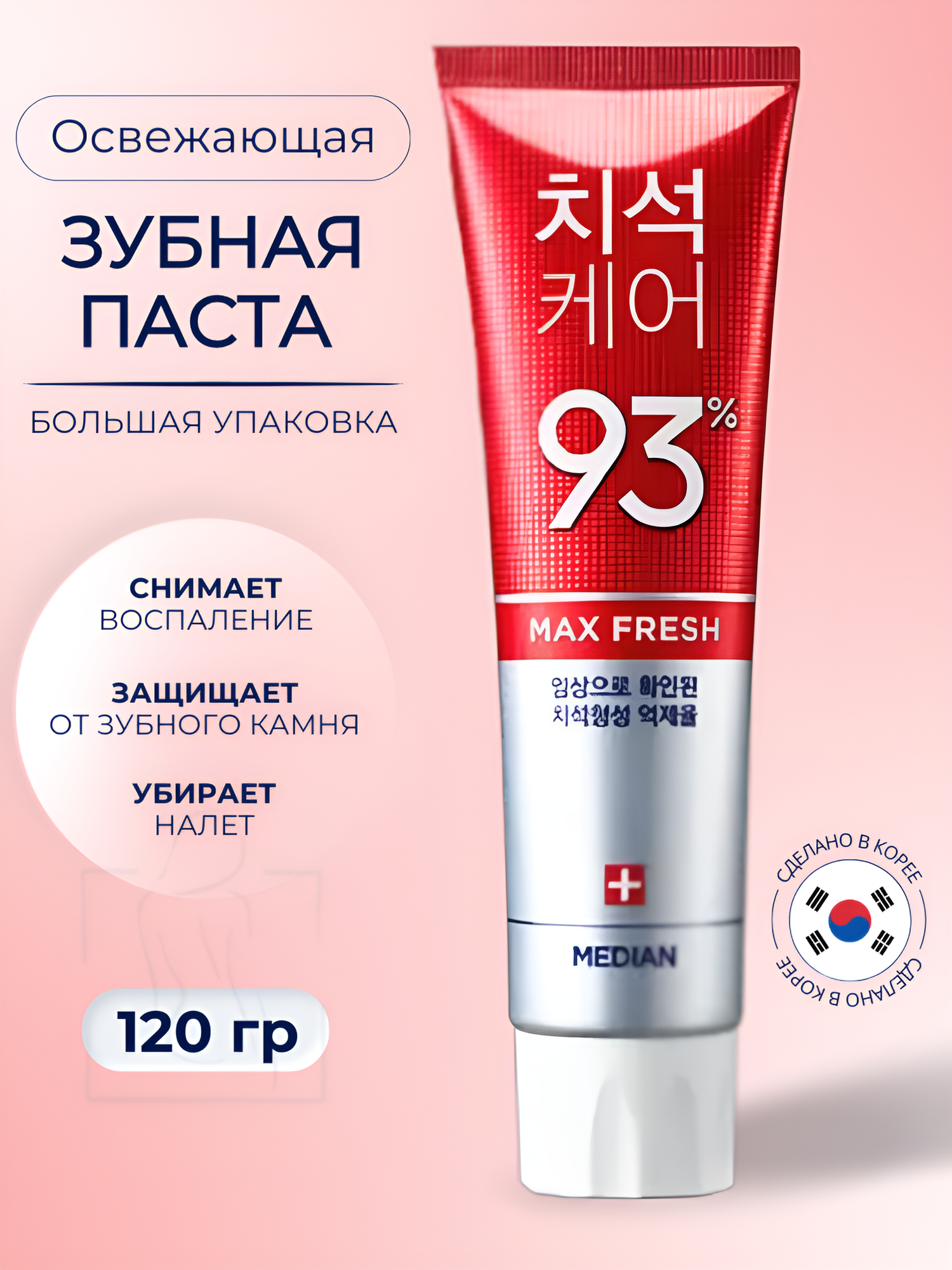 Зубная паста для эффективного и бережного удаления зубного камня Median 93% Original Toothpaste-Max Red 120 мл