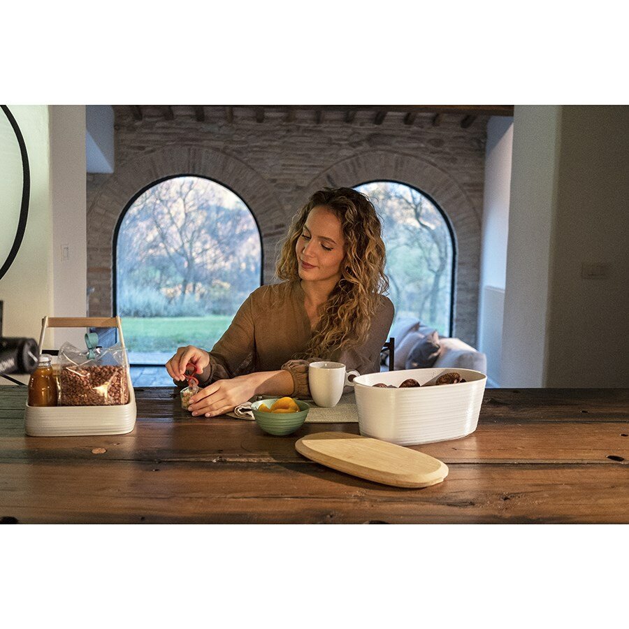 Хлебница с бамбуковой крышкой Guzzini Tierra 10 л, молочно-белая