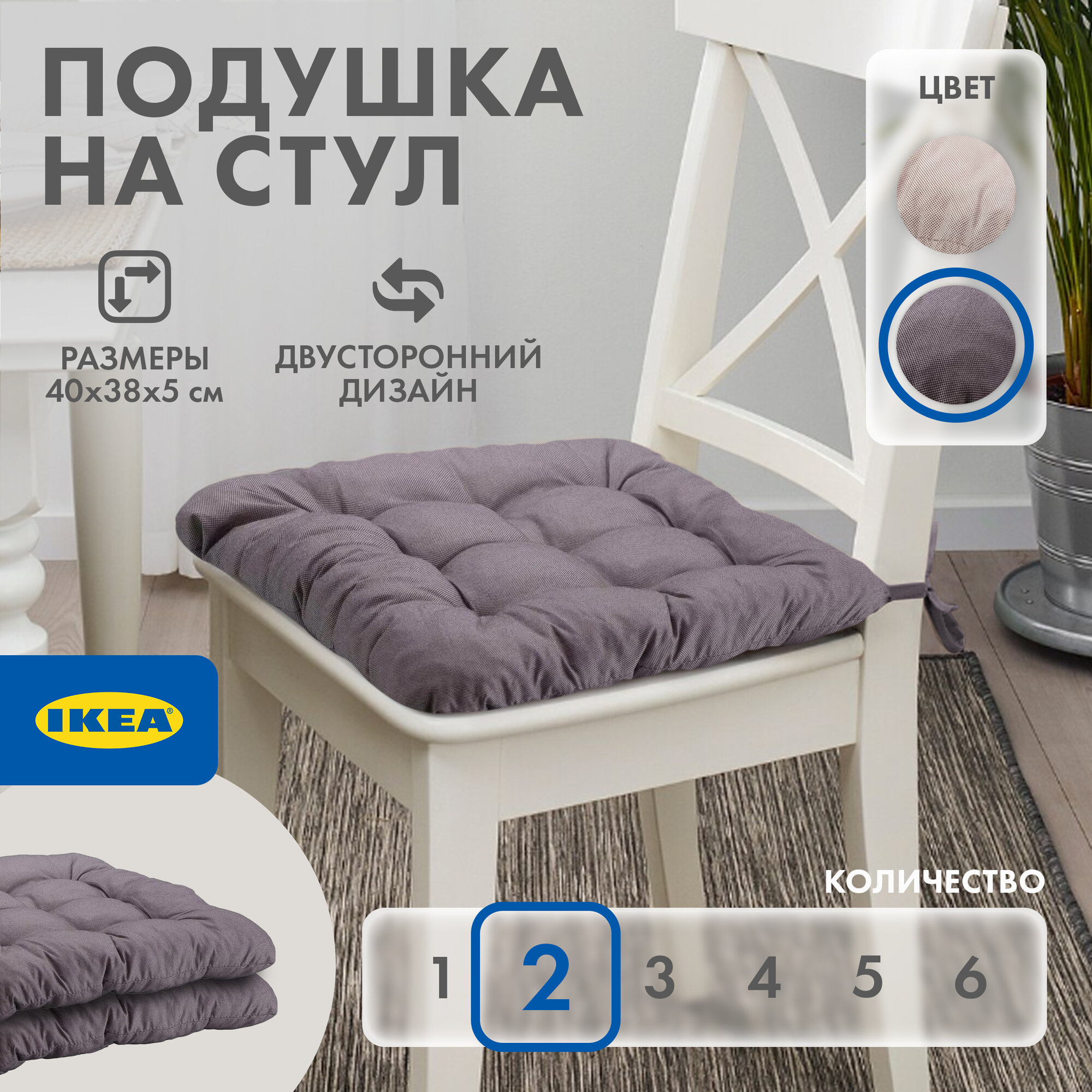 Подушка на стул икеа хэлльви, 40 x 38 см, 2 шт, серый интересное: