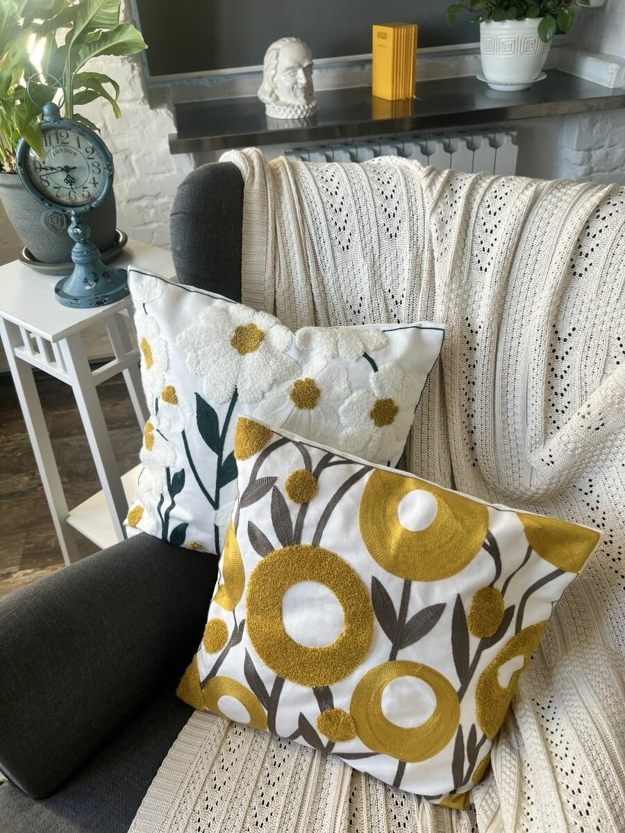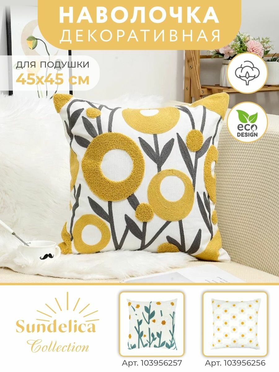 Декоративная наволочка Sundelica, размер 45x45, съемная, с вышивкой, 1 штука