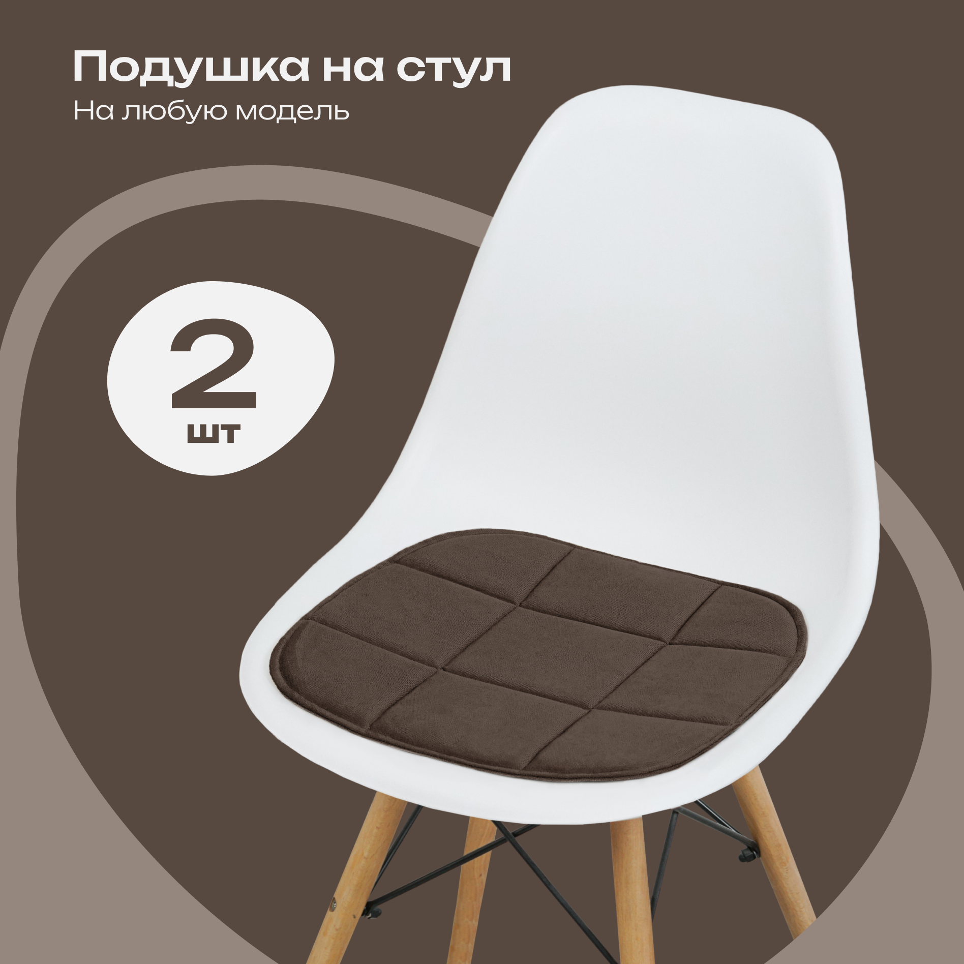 Комплект подушек на стул 38x39 см, 2 шт, кофейный
