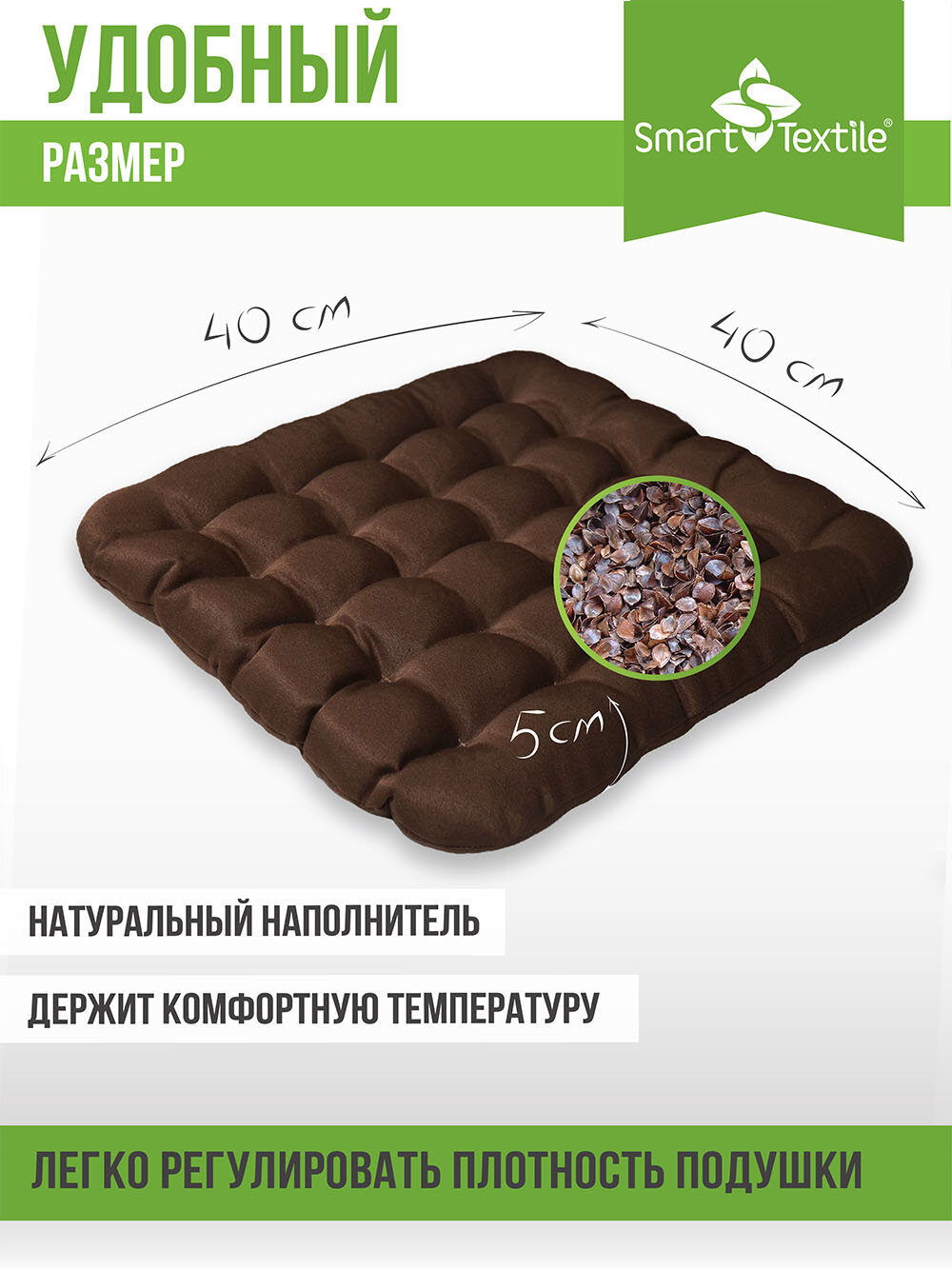 Подушка-сидушка "Уют" Smart Textile, гречневая лузга, для стула, 40 x 40 см