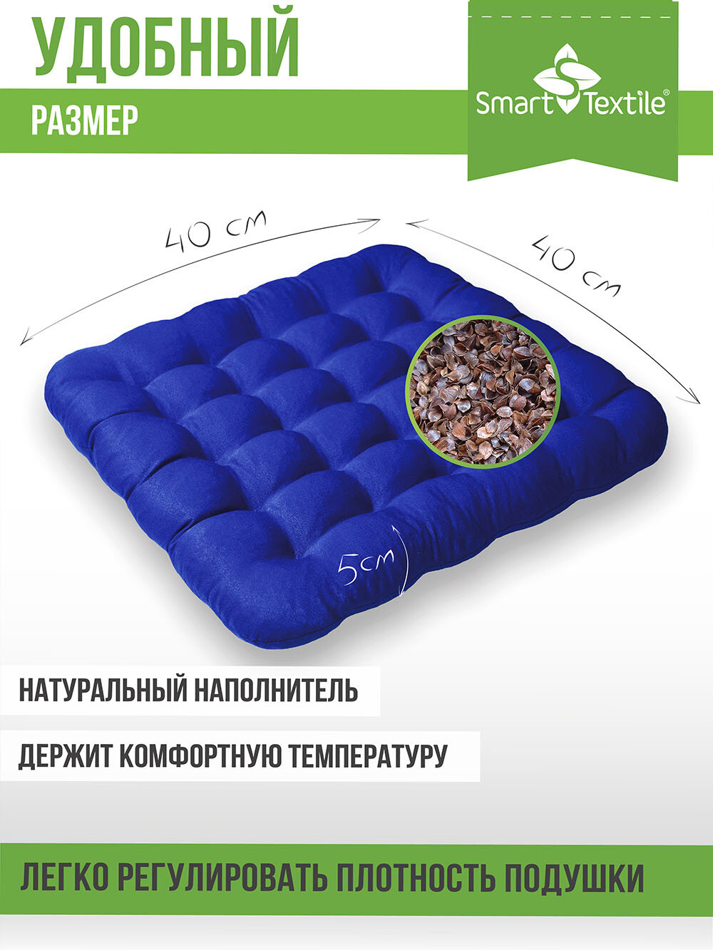 Подушка-сидушка "Уют" Smart Textile, гречневая лузга, для стула, 40 x 40 см