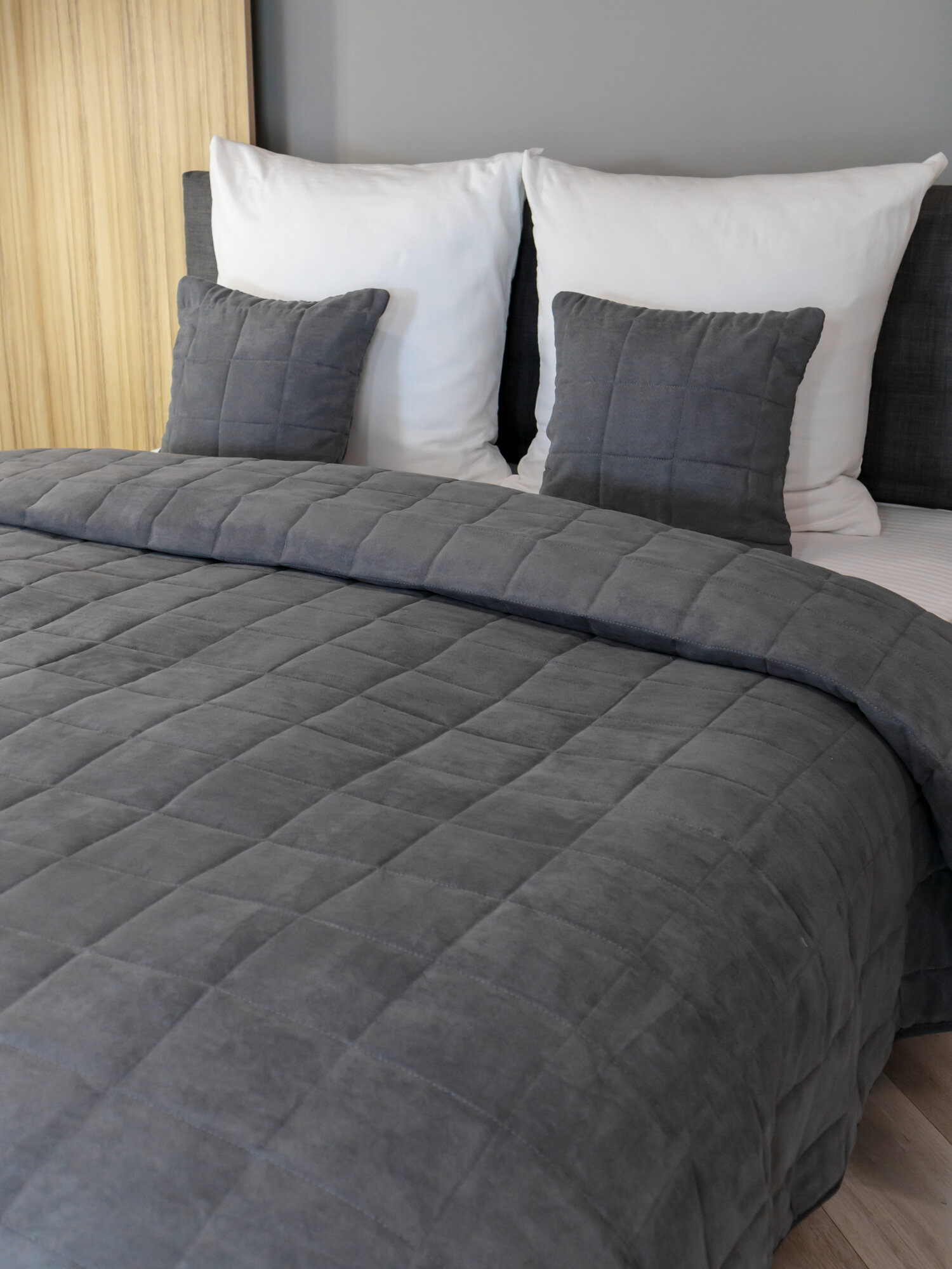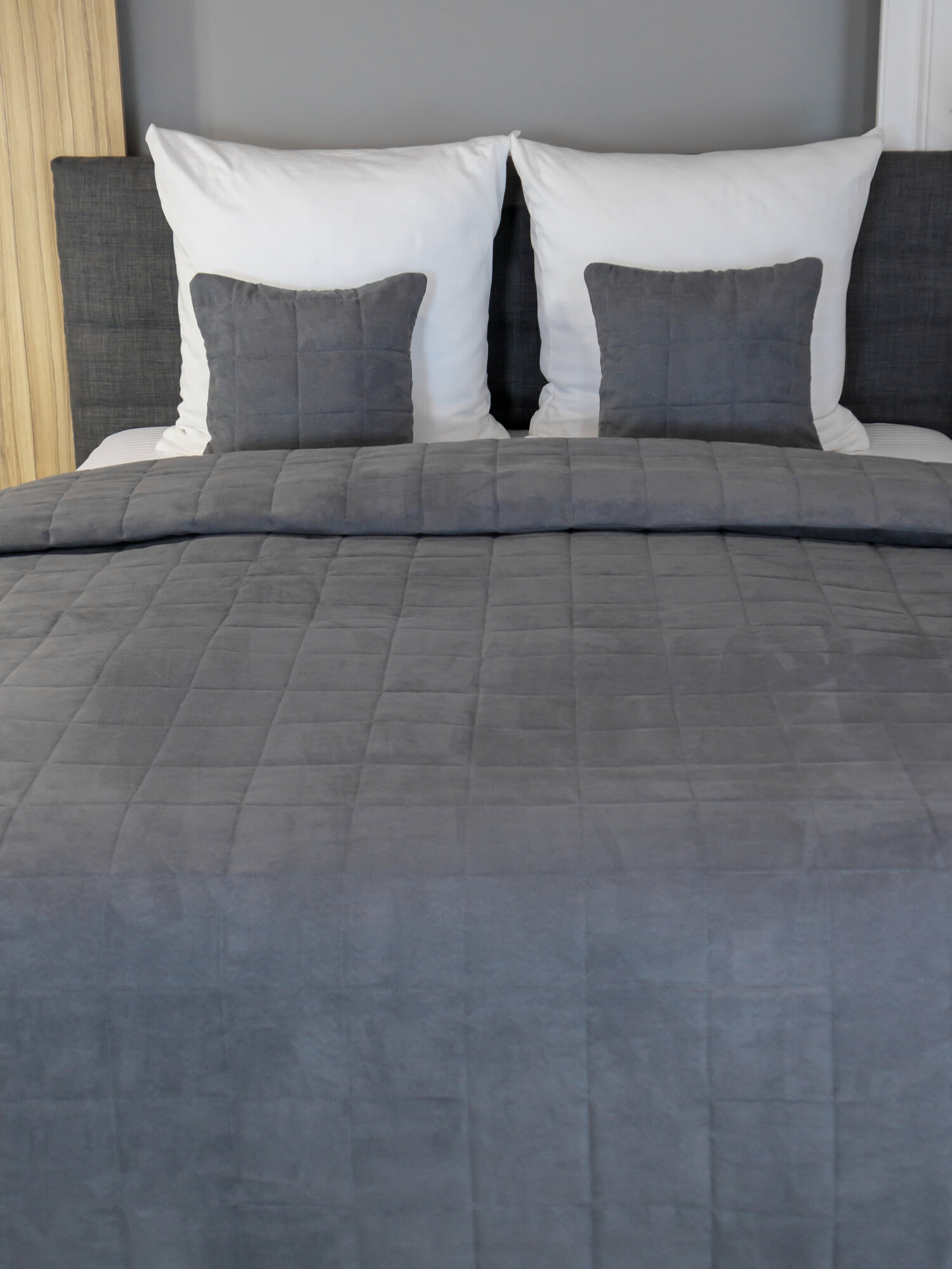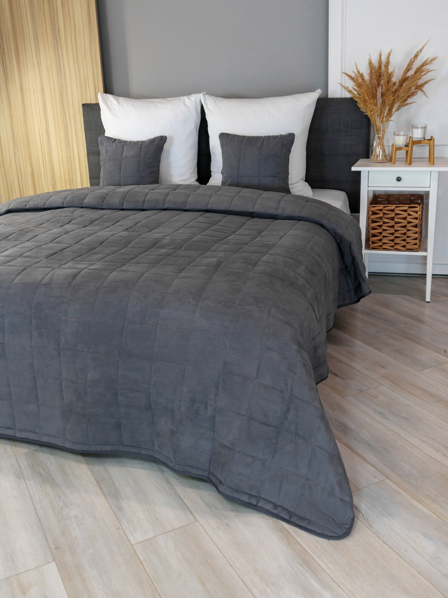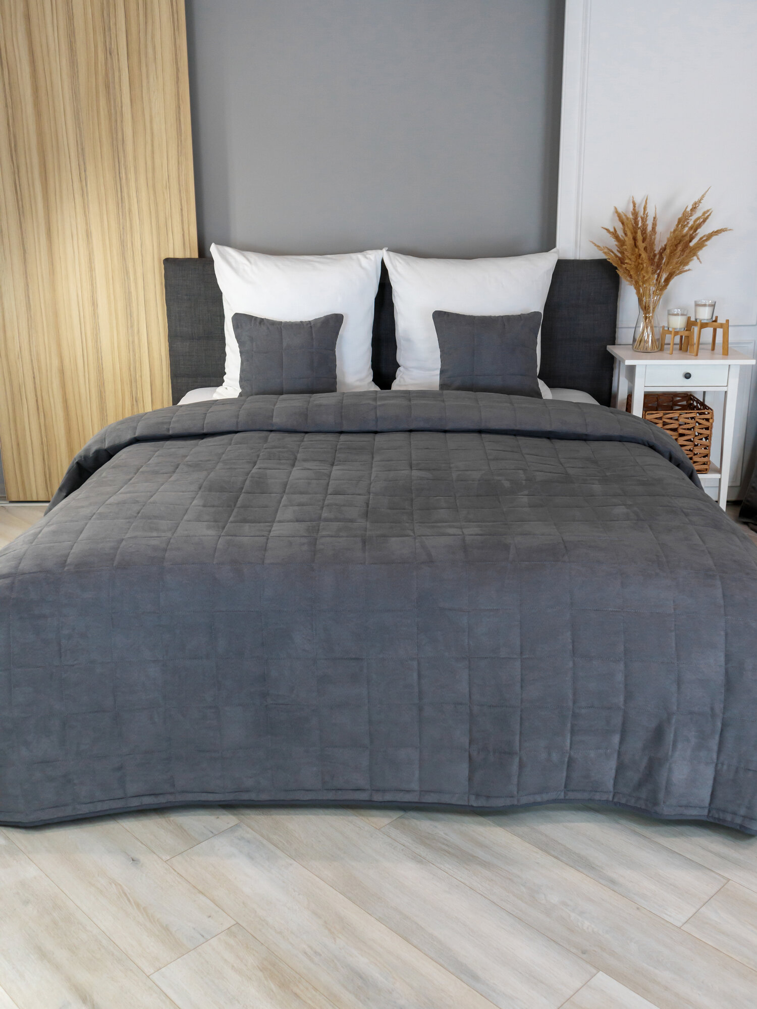 Купить Комплект покрывало 220х240 с 2-мя наволочками 40х40 на молнии, замша серый