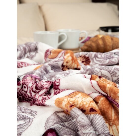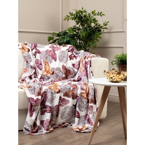 Плед Texrepublic Absolute Бабочки Фланель Бежевый/фиолетовый, 150х200
