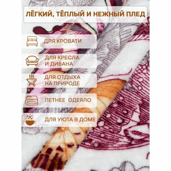Плед Ромашка 180x200см, 2-спальный, мягкий, тонкий, теплый