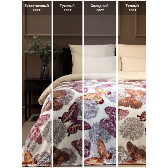 Плед TexRepublic Absolute Бабочки Фланель 1,5 сп. Бежевый/фиолетовый, 1998648