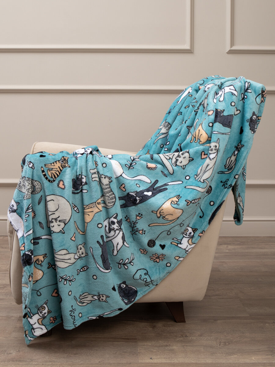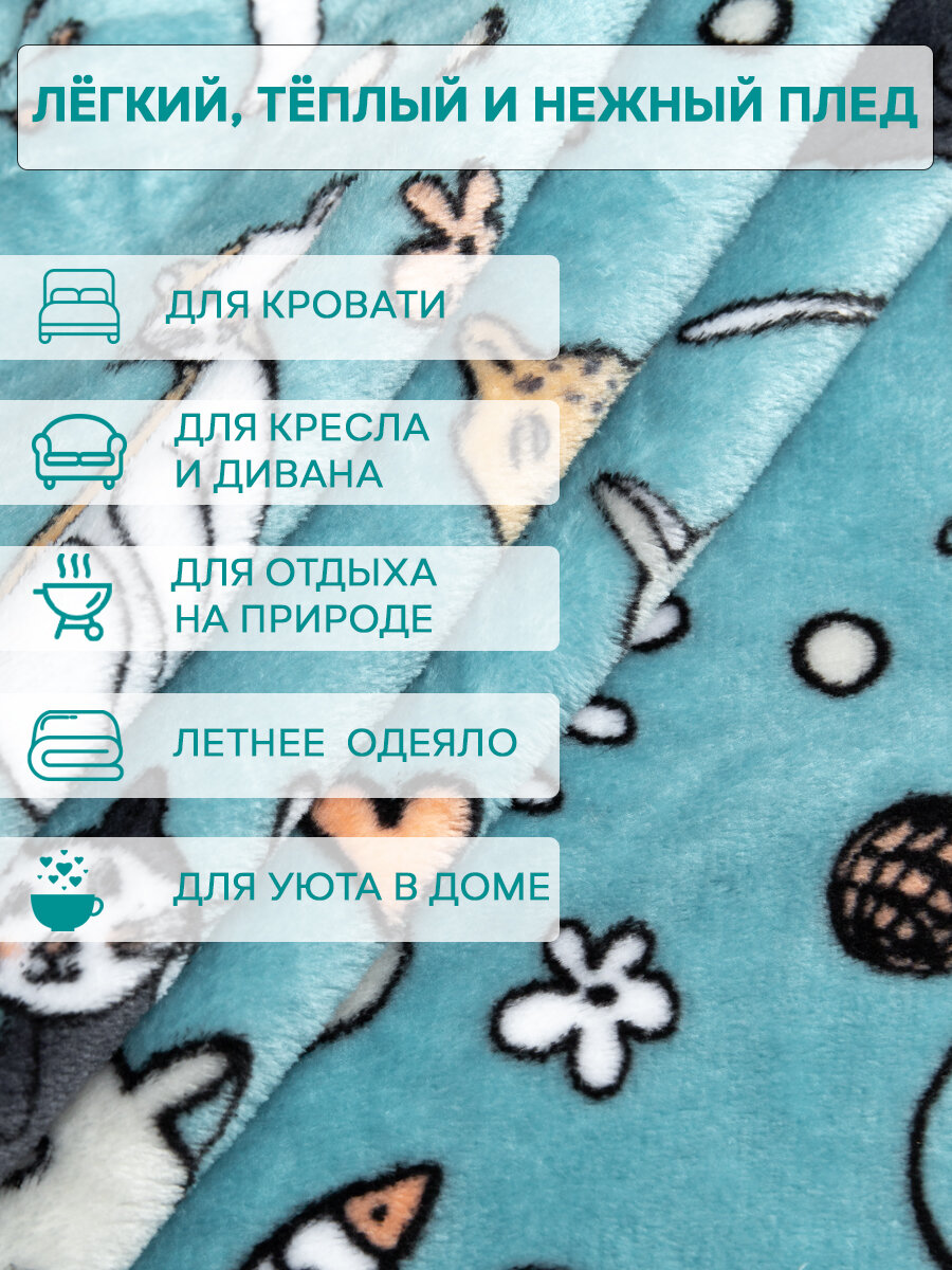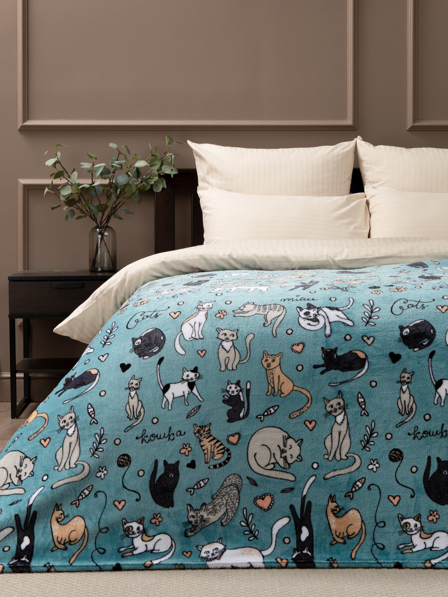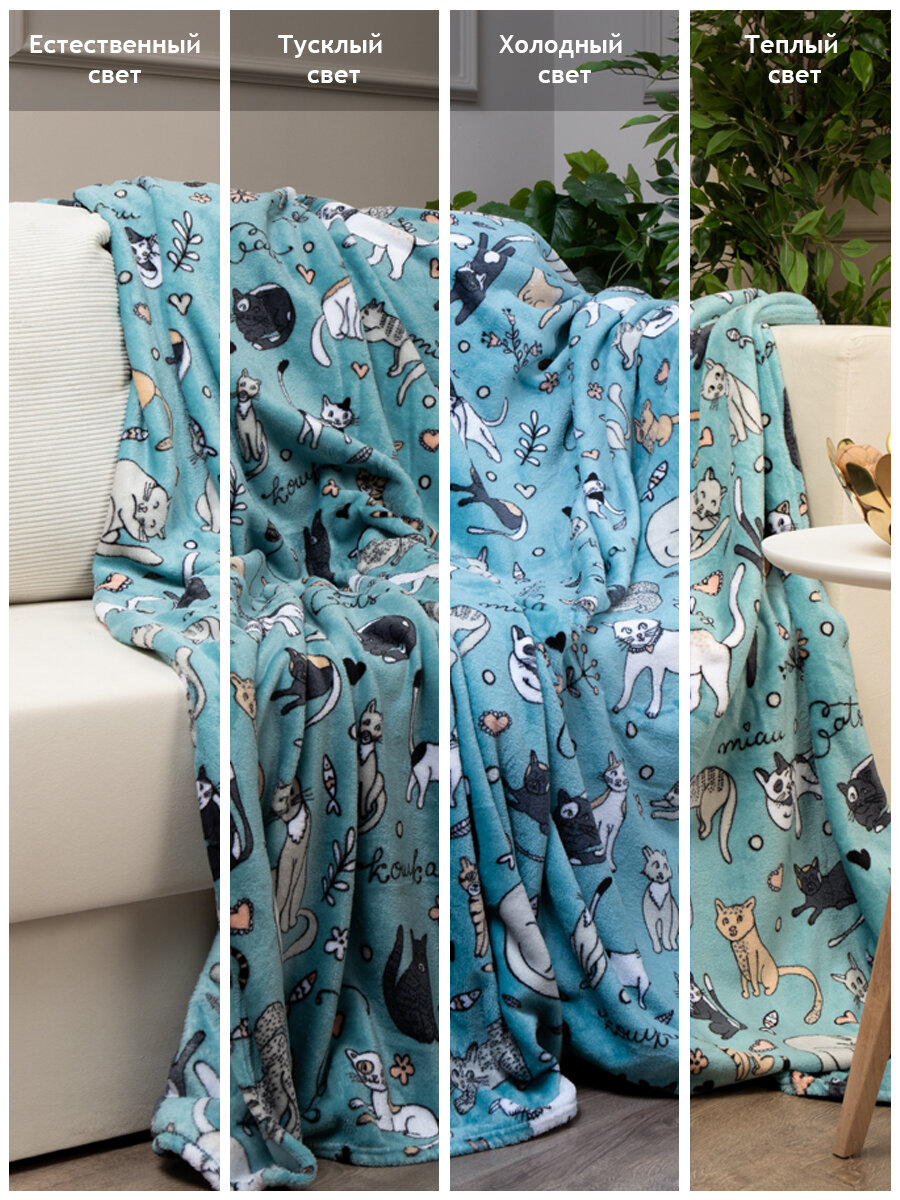 СохранитьПлед TexRepublic Absolute 180х200 см, 2 спальный, фланелевый, покрывало на диван, теплый, мягкий, ментоловый с принтом коты интересное: