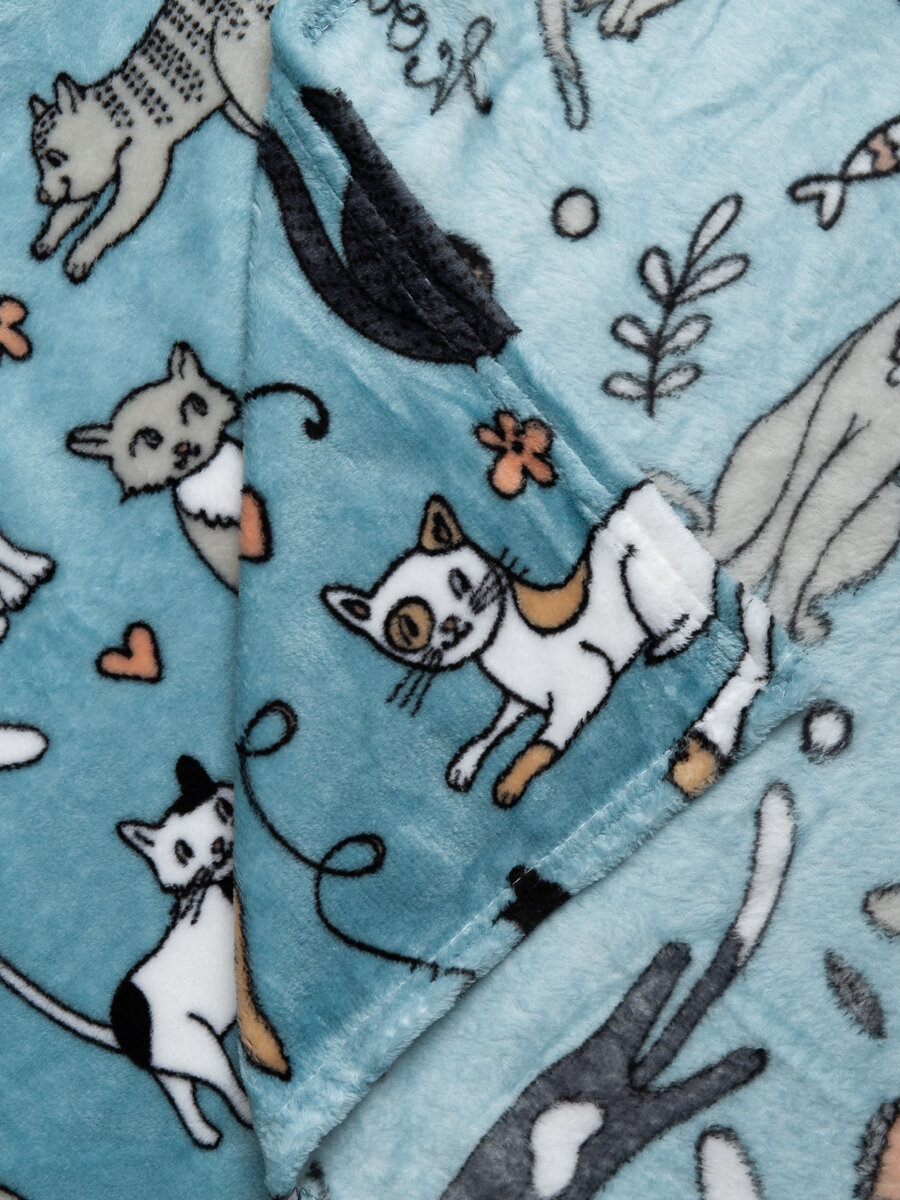 Плед TexRepublic Absolute 150х200 см, 1,5 спальный, велсофт, покрывало на диван, теплый, мягкий, голубой, серый с рисунком котики