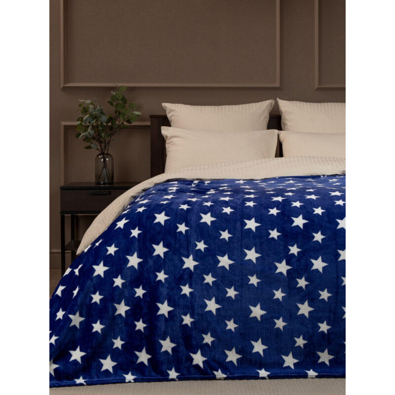 Плед TexRepublic Absolute 180х200 см, 2 спальный, фланелевый, покрывало на диван, теплый, мягкий, синий с принтом Космос