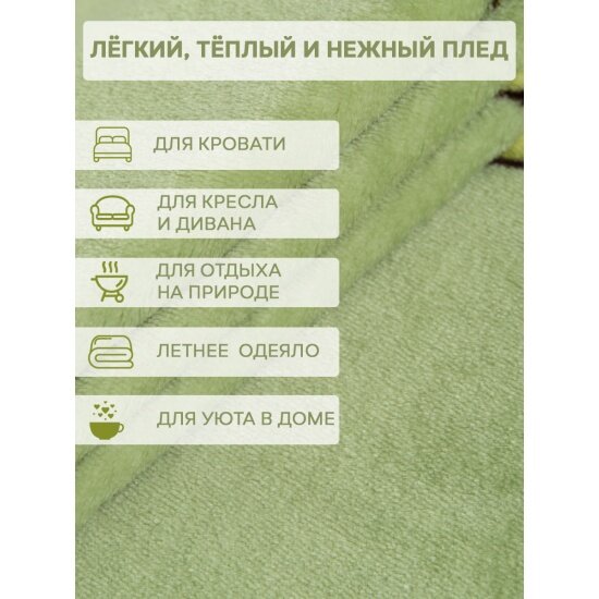 Плюшевый плед Ромашка 180x200см, 2-спальный, мягкий, тонкий, теплый, зеленое покрывало