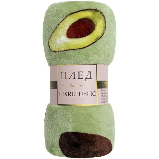 Плед TexRepublic Absolute 140х200 см, 1,5 спальный, фланелевый, покрывало на диван, теплый, мягкий, зеленый с принтом авокадо