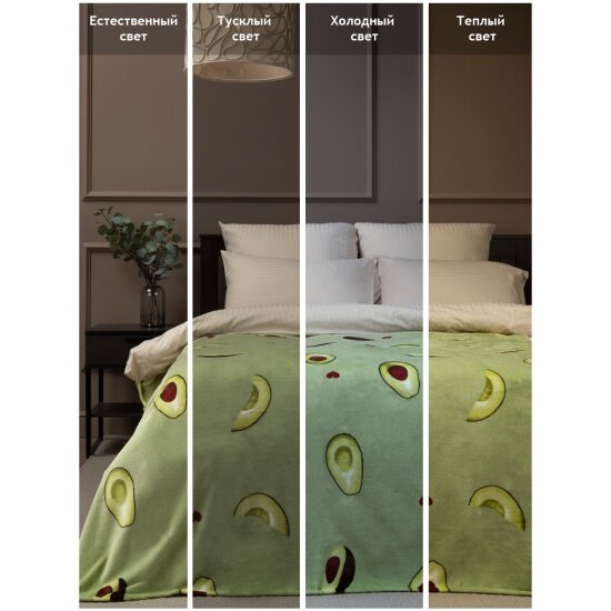 Плед TexRepublic Absolute 180х200 см, 2 спальный, велсофт, покрывало на диван, теплый, мягкий, зеленый с рисунком Авокадо