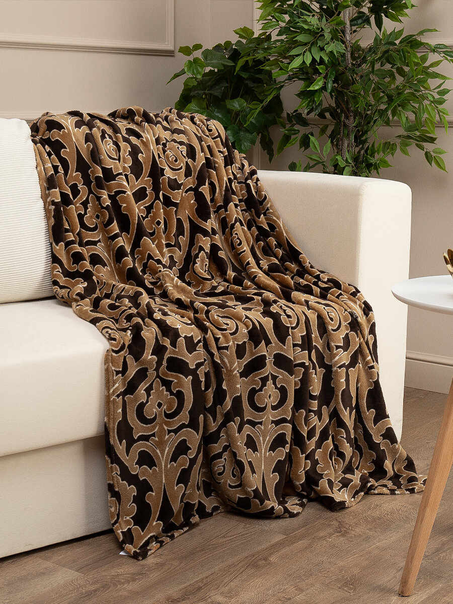 СохранитьПлед TexRepublic Absolute 150х200 см, 1,5 спальный, велсофт, покрывало на диван, теплый, мягкий, коричневый с принтом дамаск интересное: