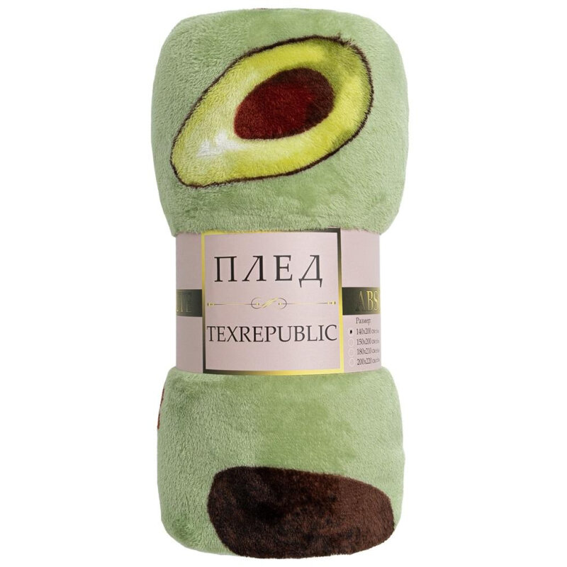 Купить Плед TexRepublic Absolute 140х200 см, 1,5 спальный, фланелевый, покрывало на диван, теплый, мягкий, зеленый с принтом авокадо