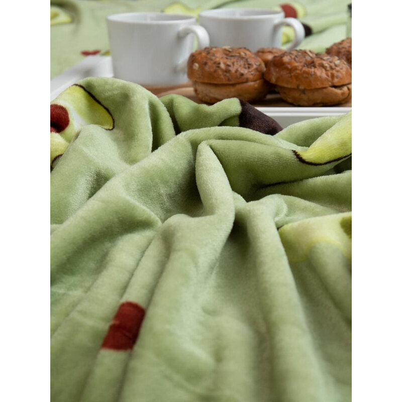 Плед TexRepublic Absolute 180х200 см, 2 спальный, велсофт, покрывало на диван, теплый, мягкий, зеленый с рисунком Авокадо