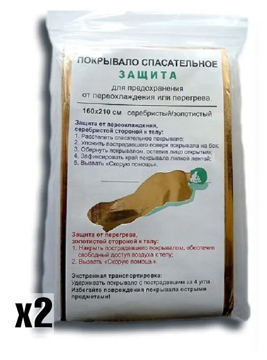 Покрывало спасательное изотермическое "защита" (160х210см), 2 шт. интересное: