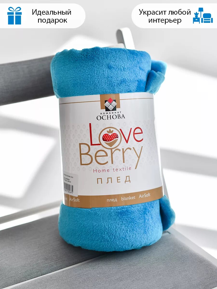 Плед 150х200 LOVEBERRY плюшевый на диван однотонный, подарок маме