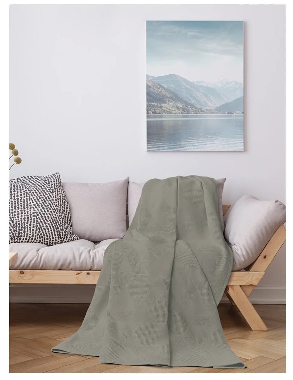 Жаккардовый плед Verossa оттенок "Серо-бежевый" 180х190 из 100% хлопка, плотность 260г/м2