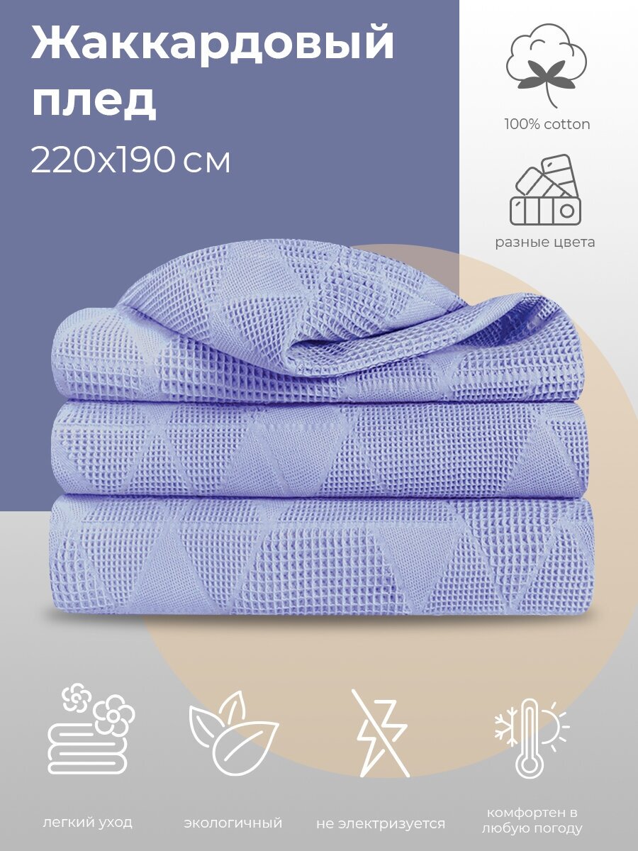 Жаккардовый плед Verossa оттенок "Лавандовый" 180х190 из 100% хлопка, плотность 260г/м2