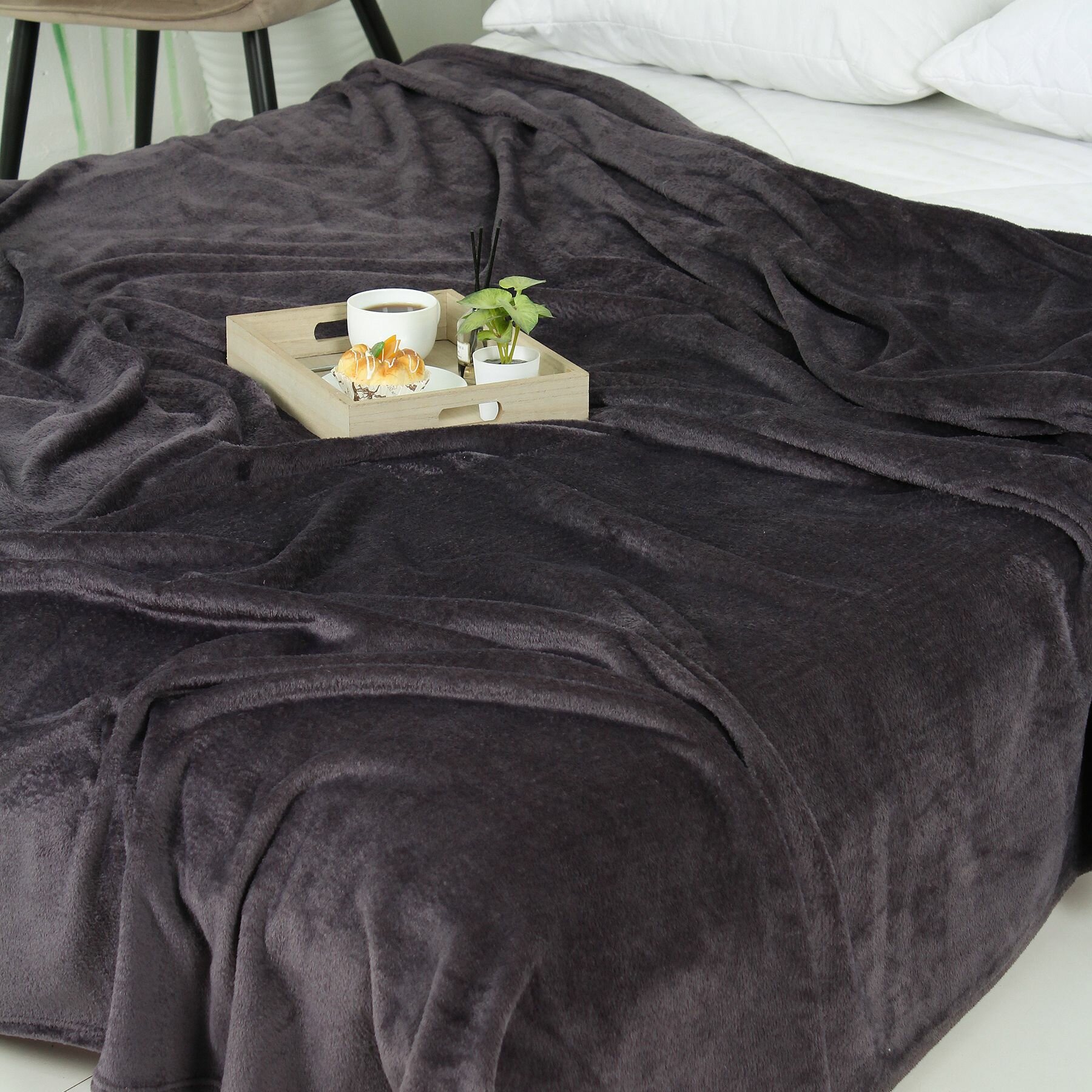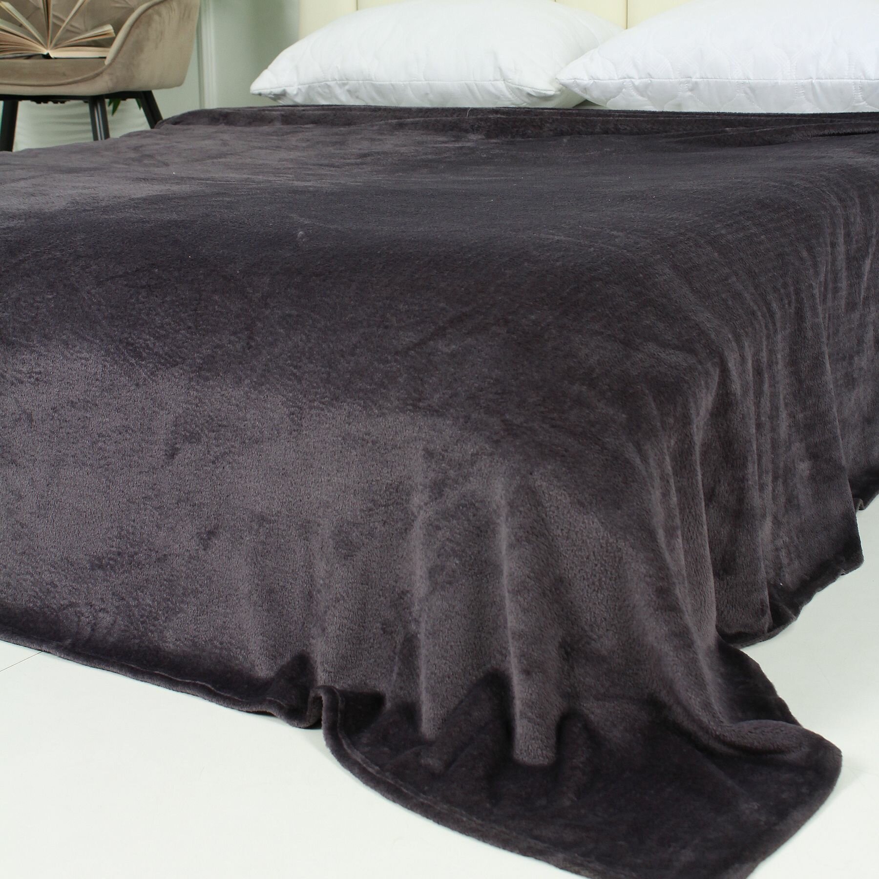 Плед 150х200 на диван однотонный черный