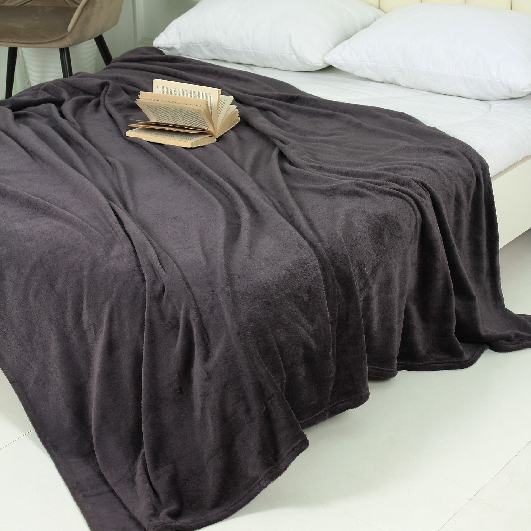 Плед 150х200 на диван однотонный шоколадный