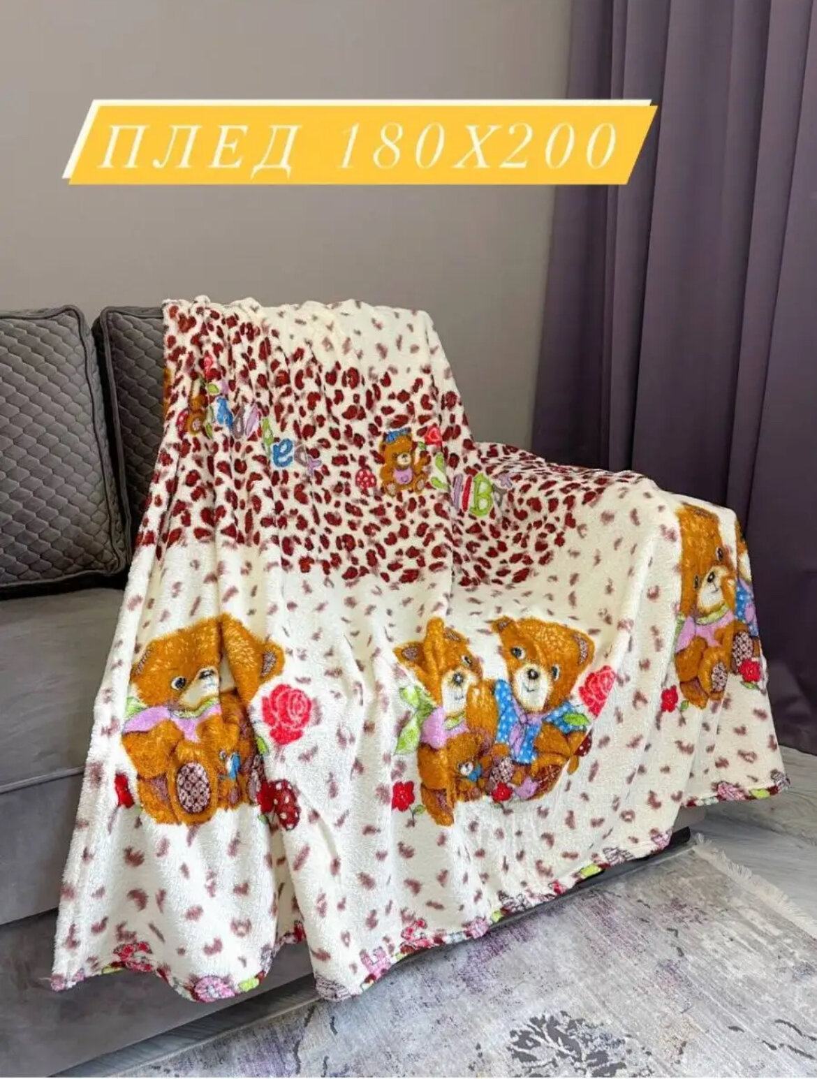 Плед "Медвежонок" 180x200 Пушистый Мягкий Покрывало интересное: