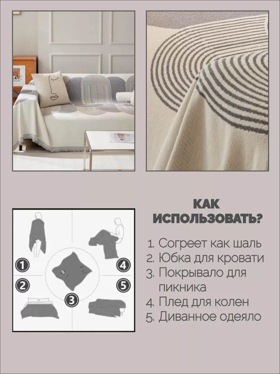 Плед 340x180 универсальный на диван