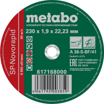 Диск Metabo SP-Novorapid 230x1.9 RU Отрезной для стали 617168000