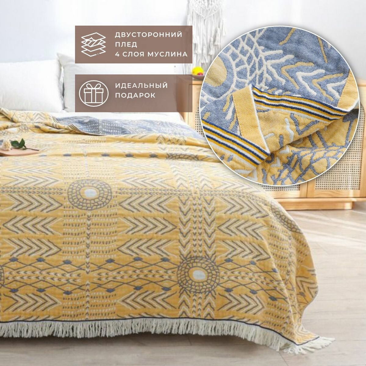 СохранитьПлед-покрывало Muslin Blanket 200x230 см, двухсторонний, муслиновый, с вышивкой интересное: