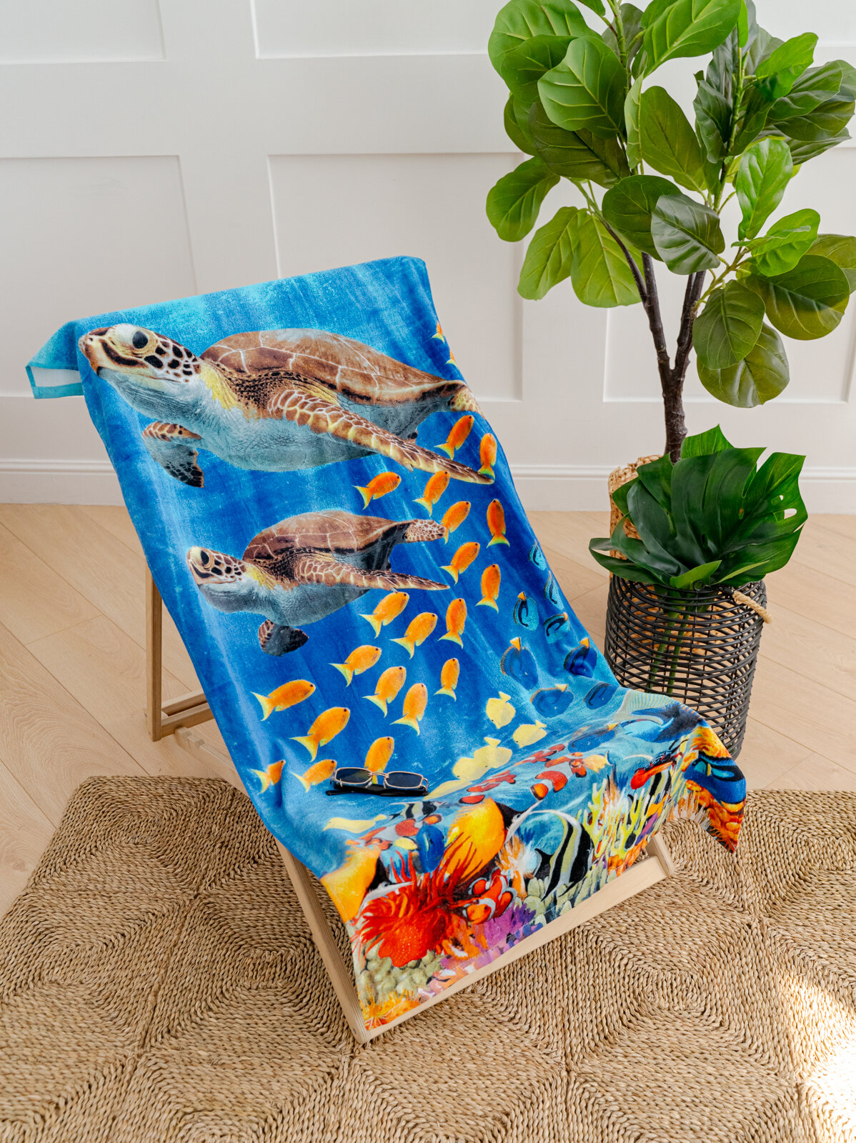 Купить Полотенце банное пляжное махровое Черепахи, 100% хлопок, 70х140 см