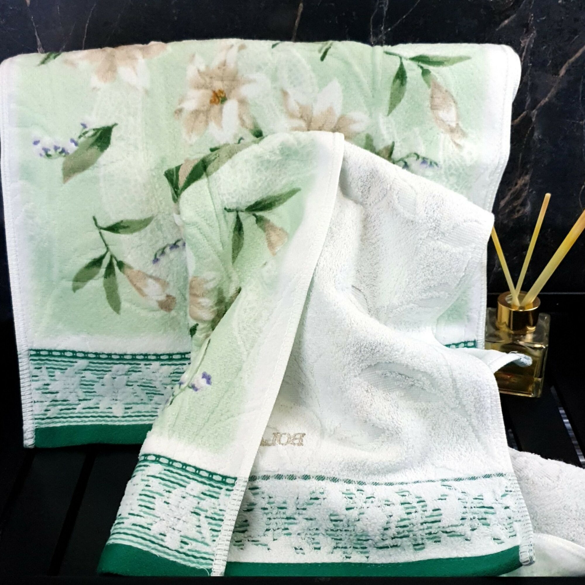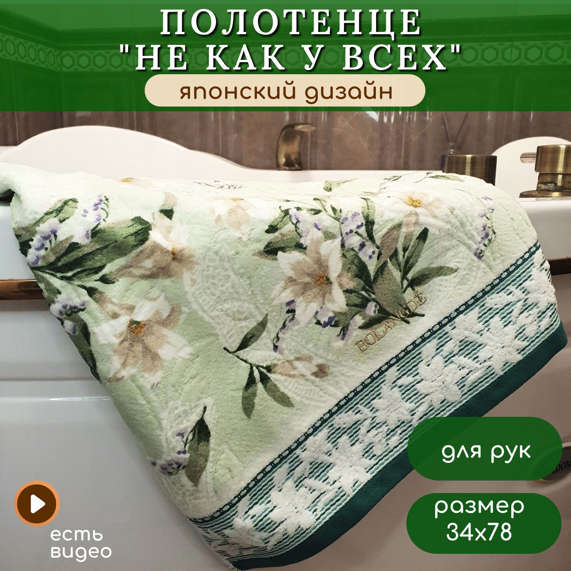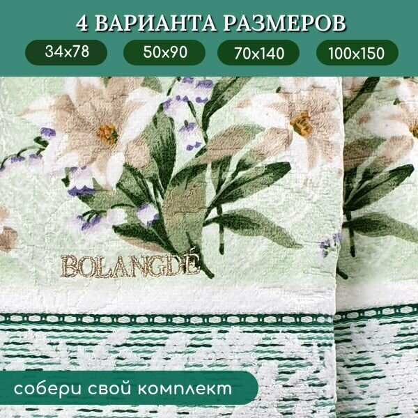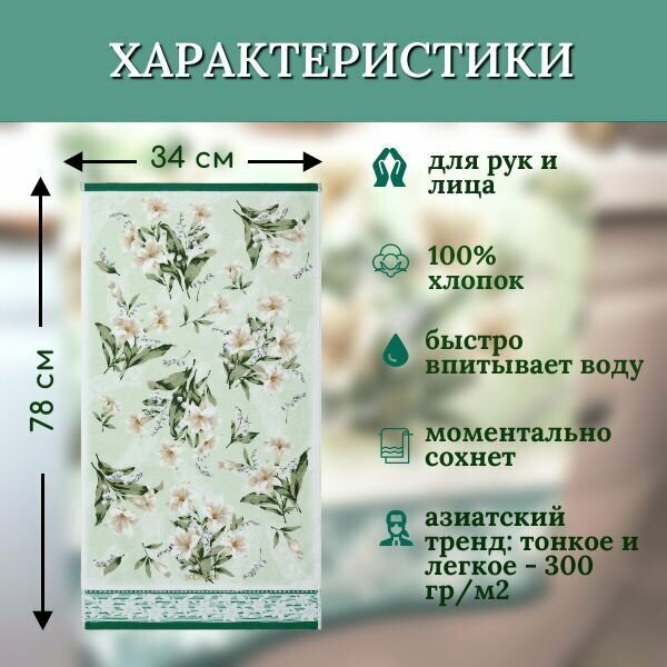 Полотенце для лица, рук махровое ванной 1 шт, BOLANGDE Япония Ландыши, зелёный, 34х78