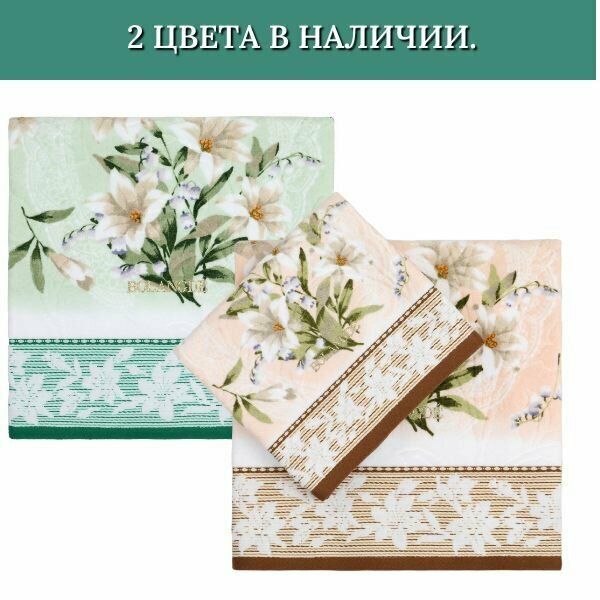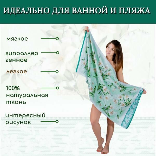 Полотенце банное, полотенце для ванной, махровое полотенце, ландыши, зеленый, 70x140 см