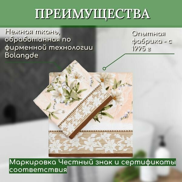 СохранитьПолотенце банное махровое для ванны, для сауны BOLANGDE Япония Ландыши, бежевый, 70х140 интересное: