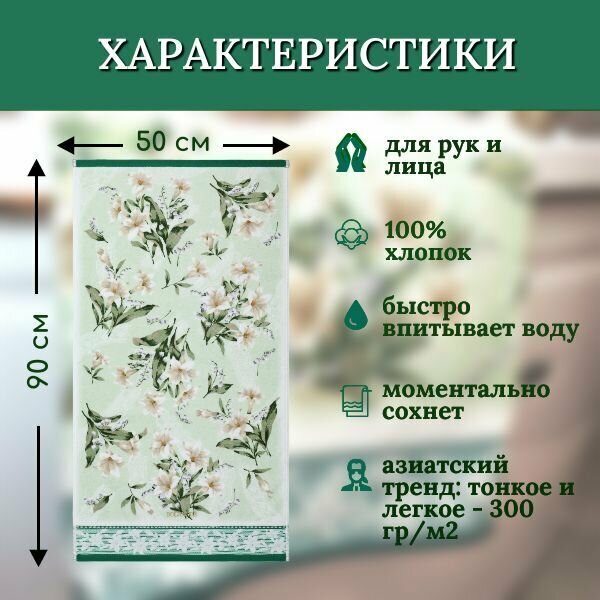 СохранитьПолотенце для лица, рук, гостевое, махровое полотенце, ландыши, зеленый, 50x90 см интересное: