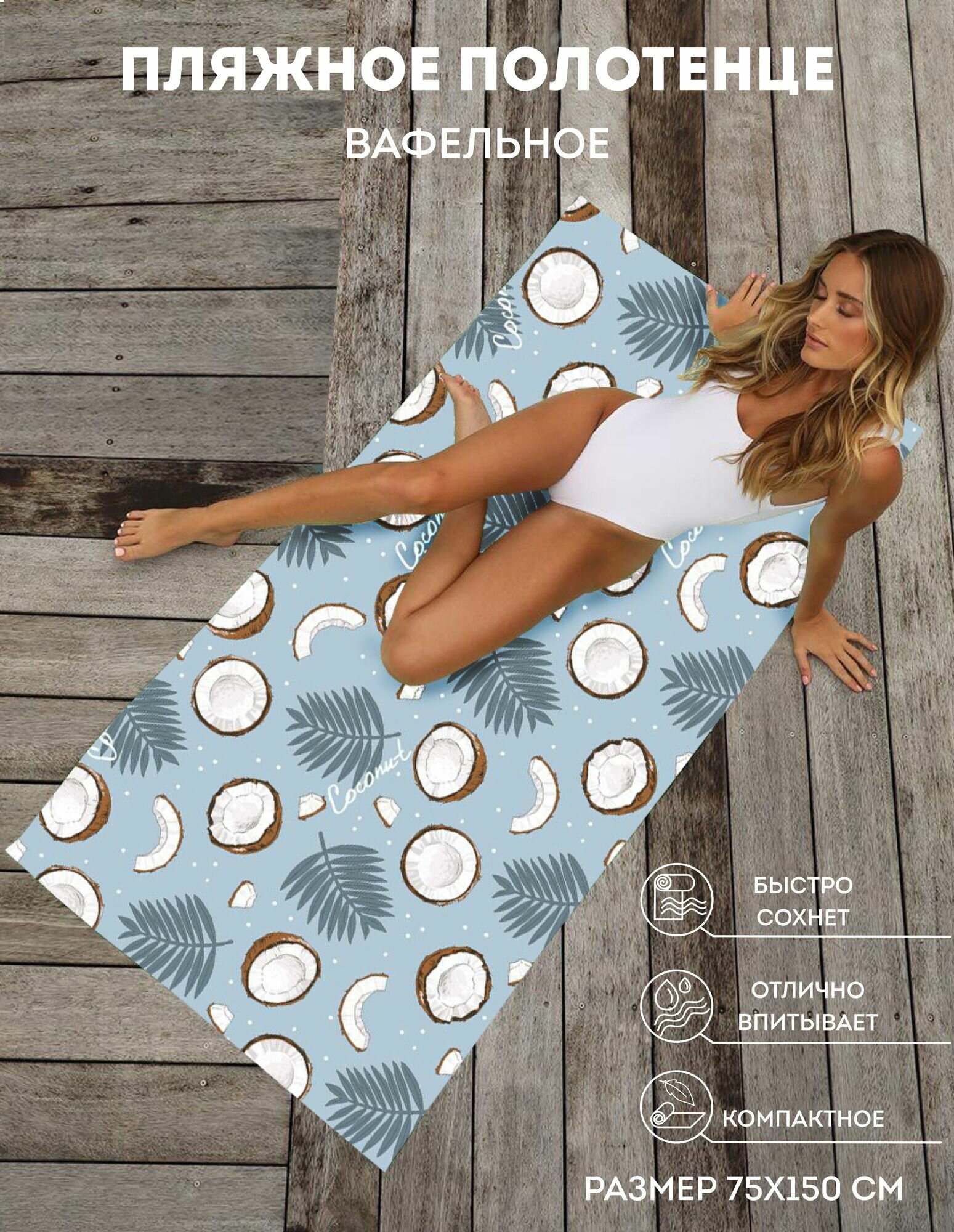 DOLLTALL / Полотенце пляжное / Покрывало для пляжа / для бани вафельное 200х150