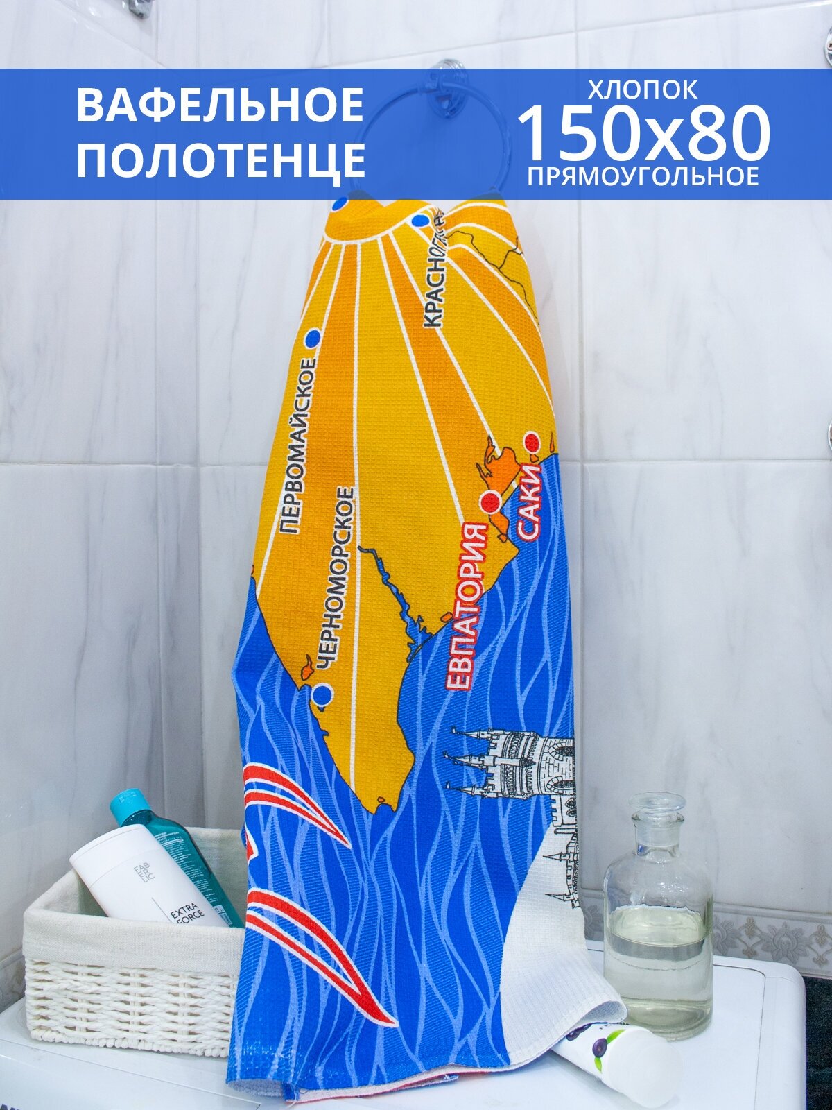 Полотенце пляжное/банное Крым 80х150 см синий интересное: