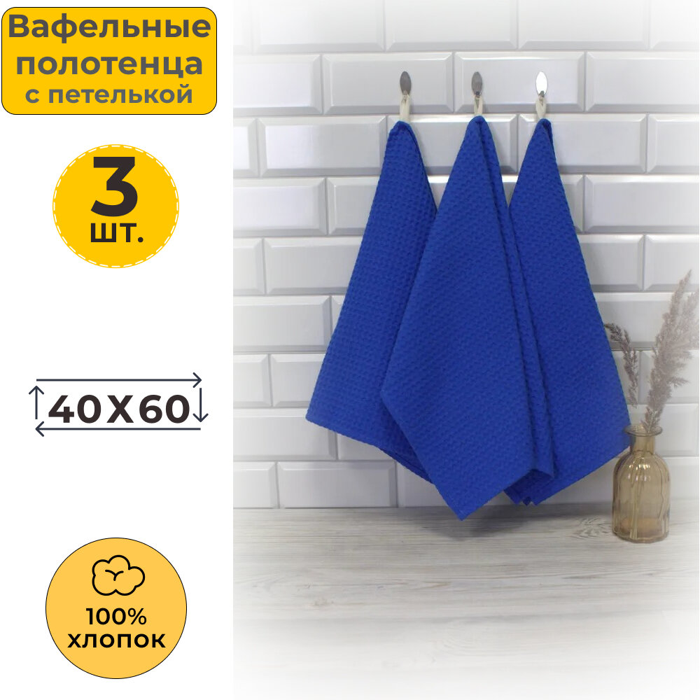 Купить Набор из 3-х вафельных полотенец 40x60 см (3 шт.) с петелькой Вотекс Синий 556