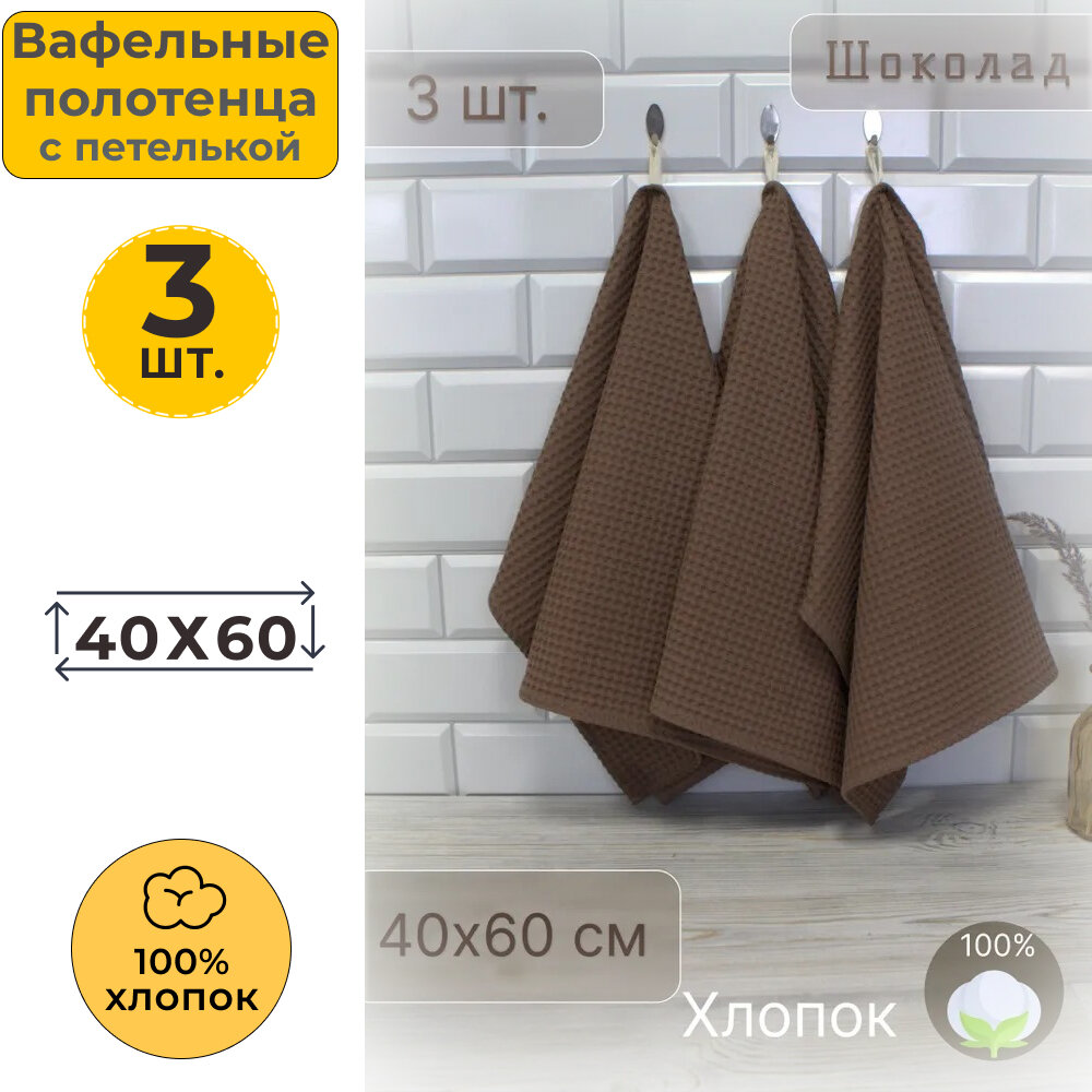 Купить Набор из 3-х вафельных полотенец 40x60 см (3 шт.) с петелькой Вотекс Темный шоколад 842