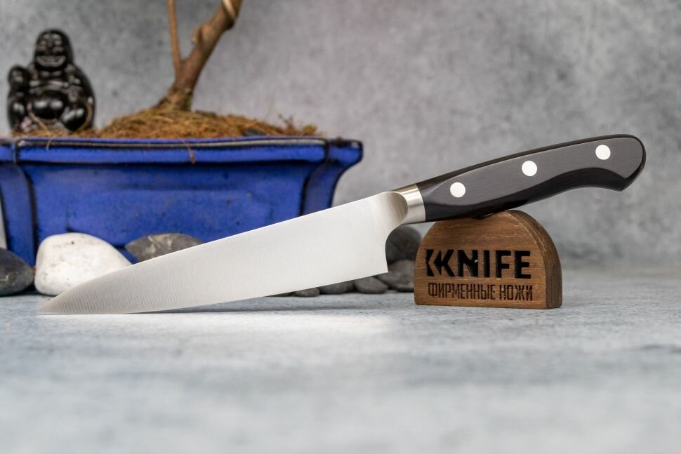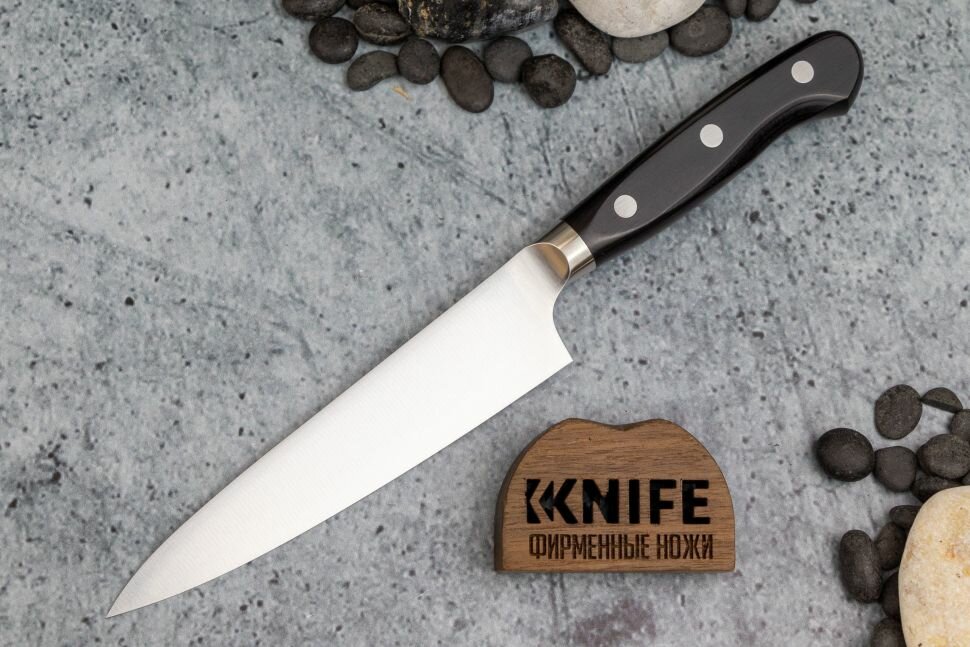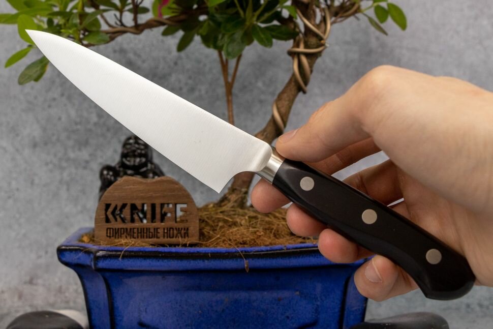 | Плюсы: | Очень острый - реально можно резать помидоры со стороны кожицы, хорошо держит заточку