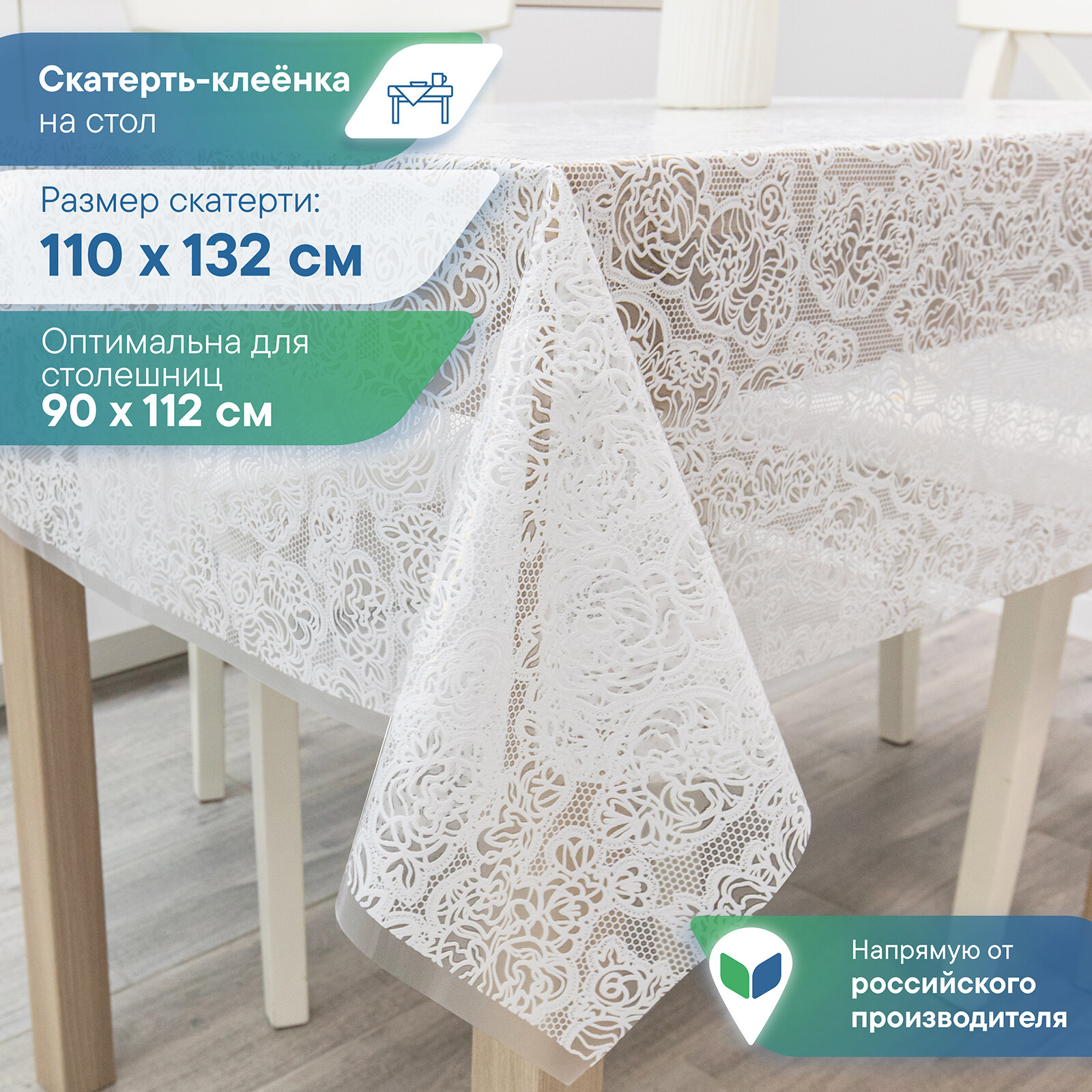 Скатерть клеенка столовая VILINA "Муза" прямоугольная водонепроницаемая на стол для кухни ажурная 110х132 см Валансьен