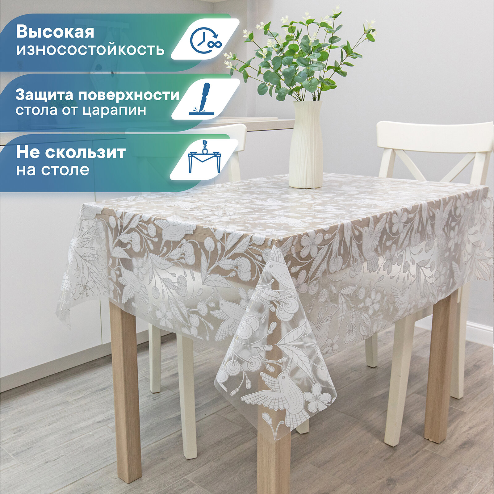 Купить Скатерть клеенка столовая VILINA "Муза" прямоугольная водонепроницаемая на стол для кухни ажурная 110х132 см Колибри