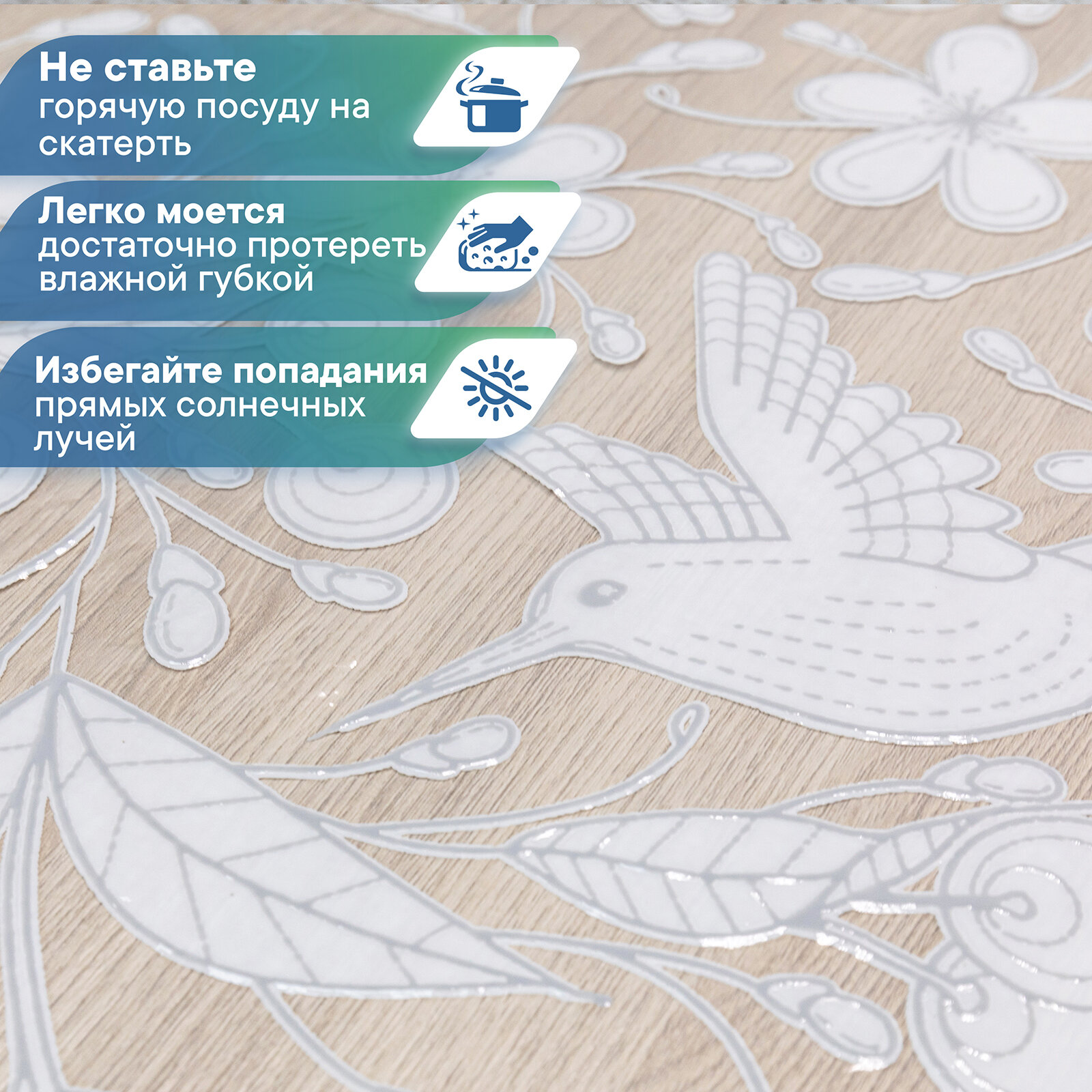 СохранитьСкатерть клеенка столовая VILINA "Муза" прямоугольная водонепроницаемая на стол для кухни ажурная 110х132 см Колибри интересное: