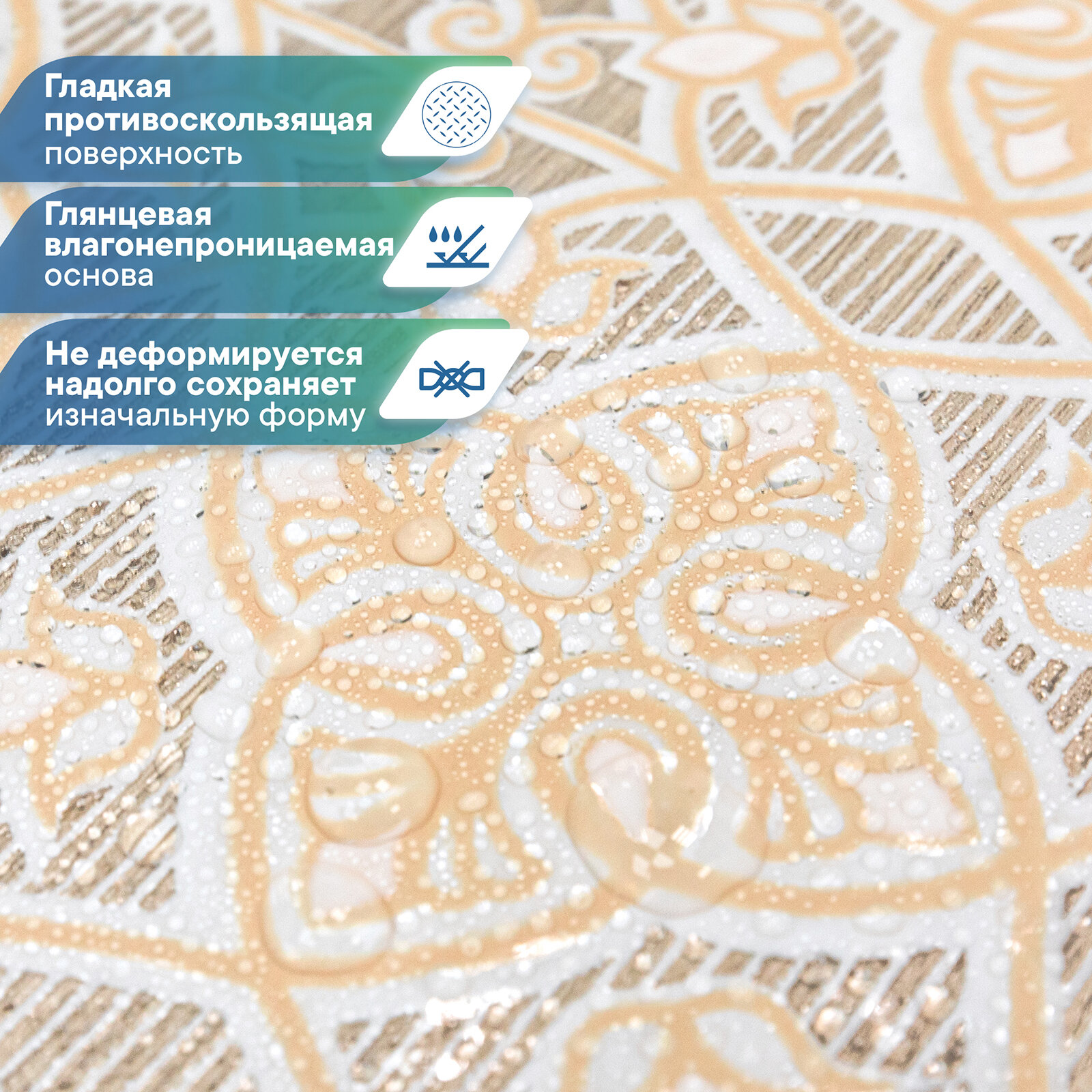 СохранитьСкатерть клеенка столовая VILINA "Муза" прямоугольная водонепроницаемая на стол для кухни ажурная белая бежевая 110х132 см Орнамент интересное: