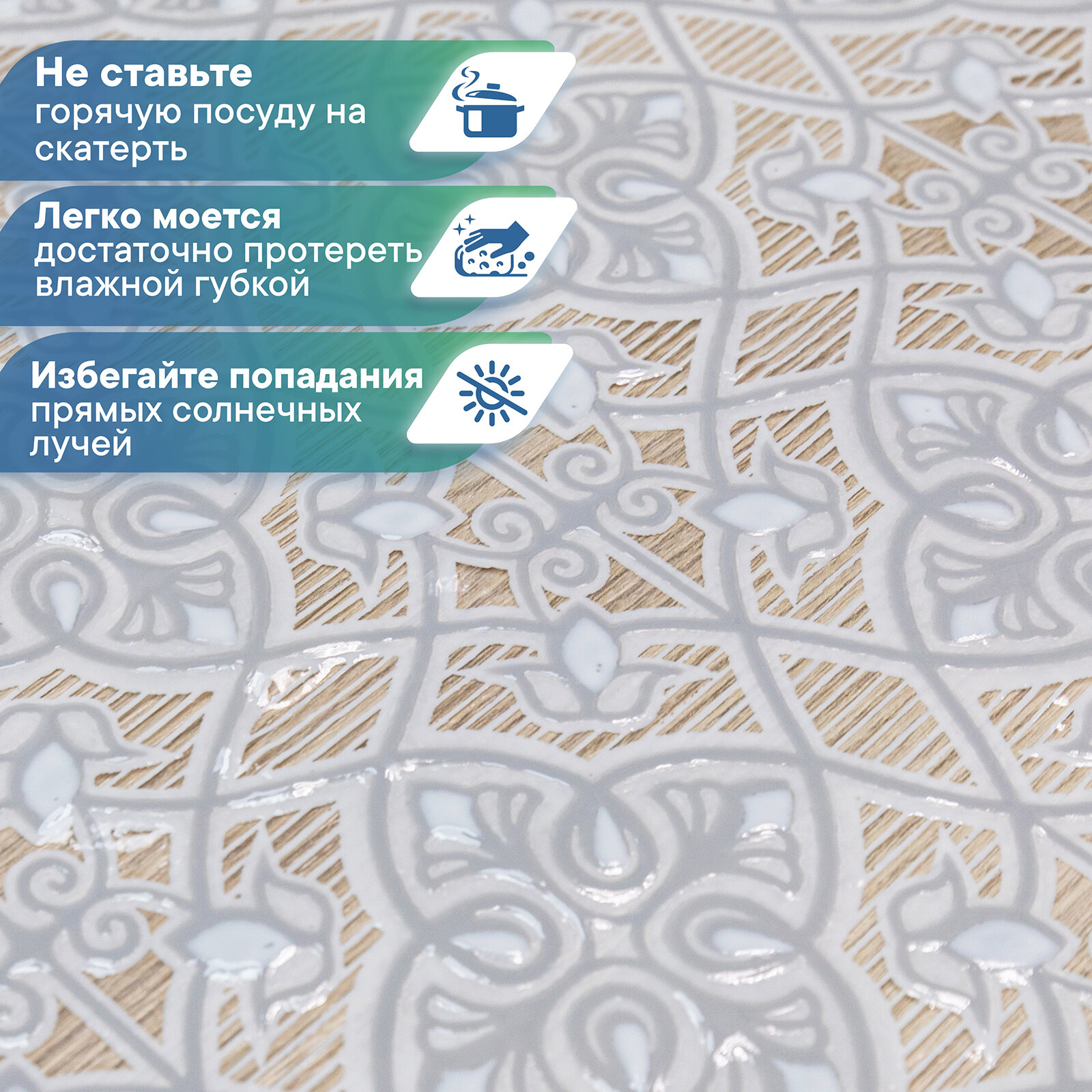 СохранитьСкатерть клеенка столовая VILINA "Муза" прямоугольная водонепроницаемая на стол для кухни ажурная белая серая 110х132 см Орнамент интересное: