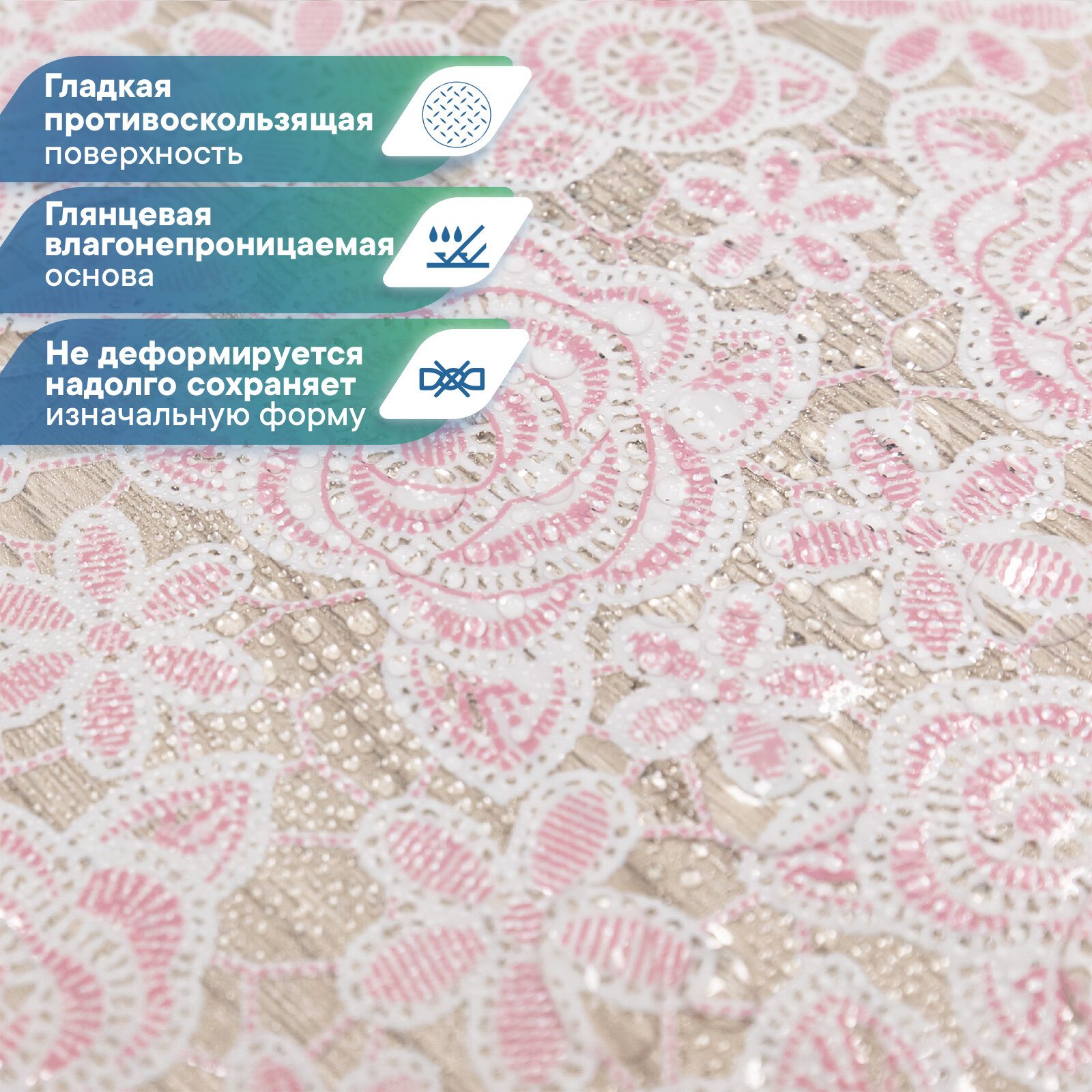 СохранитьСкатерть клеенка столовая VILINA "Муза" прямоугольная водонепроницаемая на стол для кухни ажурная 110х132 см розовая интересное: