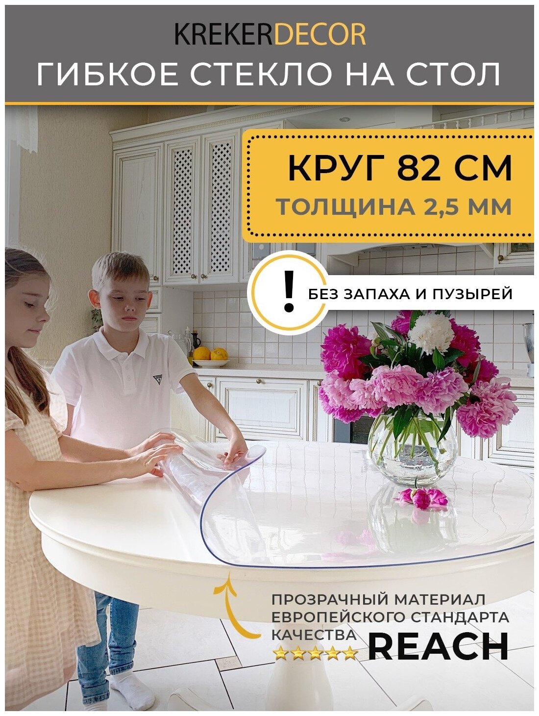 Купить Круглая скатерть на стол гибкое стекло, 82 см, 2.5 мм, прозрачная