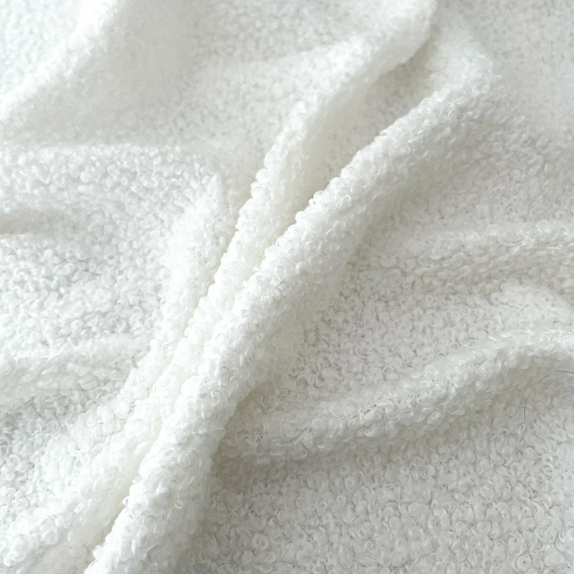 Мех искусственный для игрушек, кудрявый, ткань Букле, большой отрез 100*150 см, цвет Белый, 100 п/э.