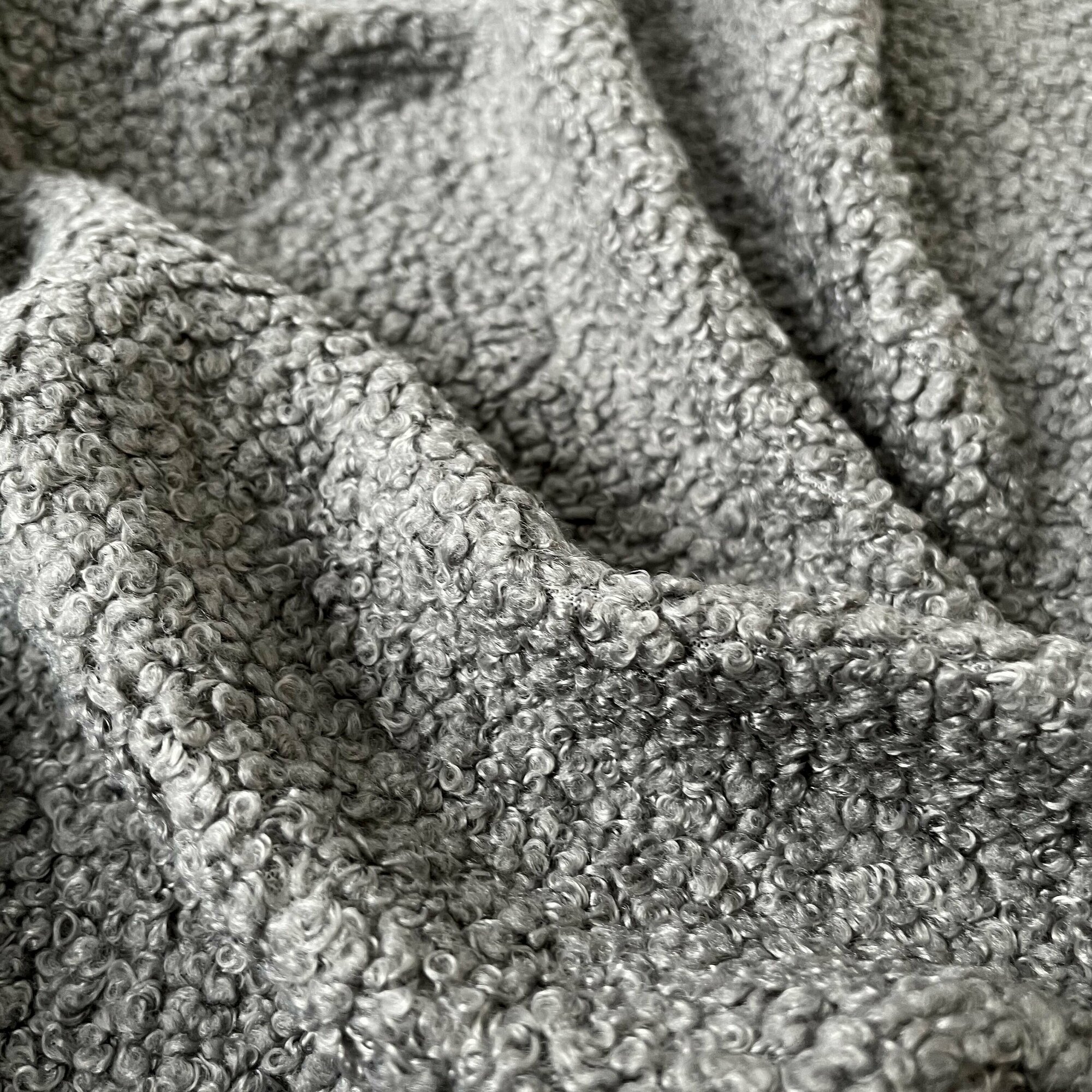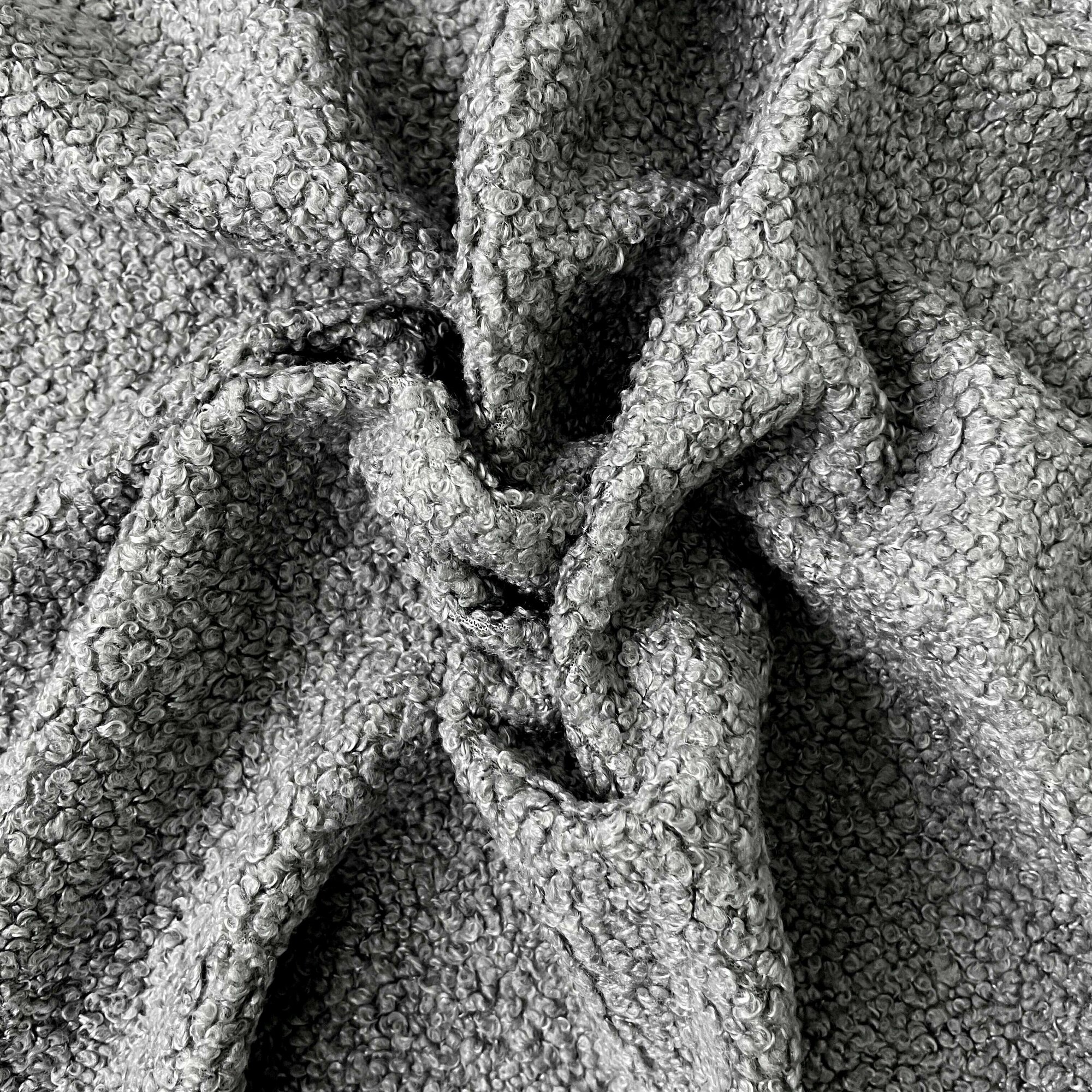 Купить Мех искусственный для игрушек, кудрявый, ткань букле, отрез 100*50 см, цвет Серый, 100 п/э.