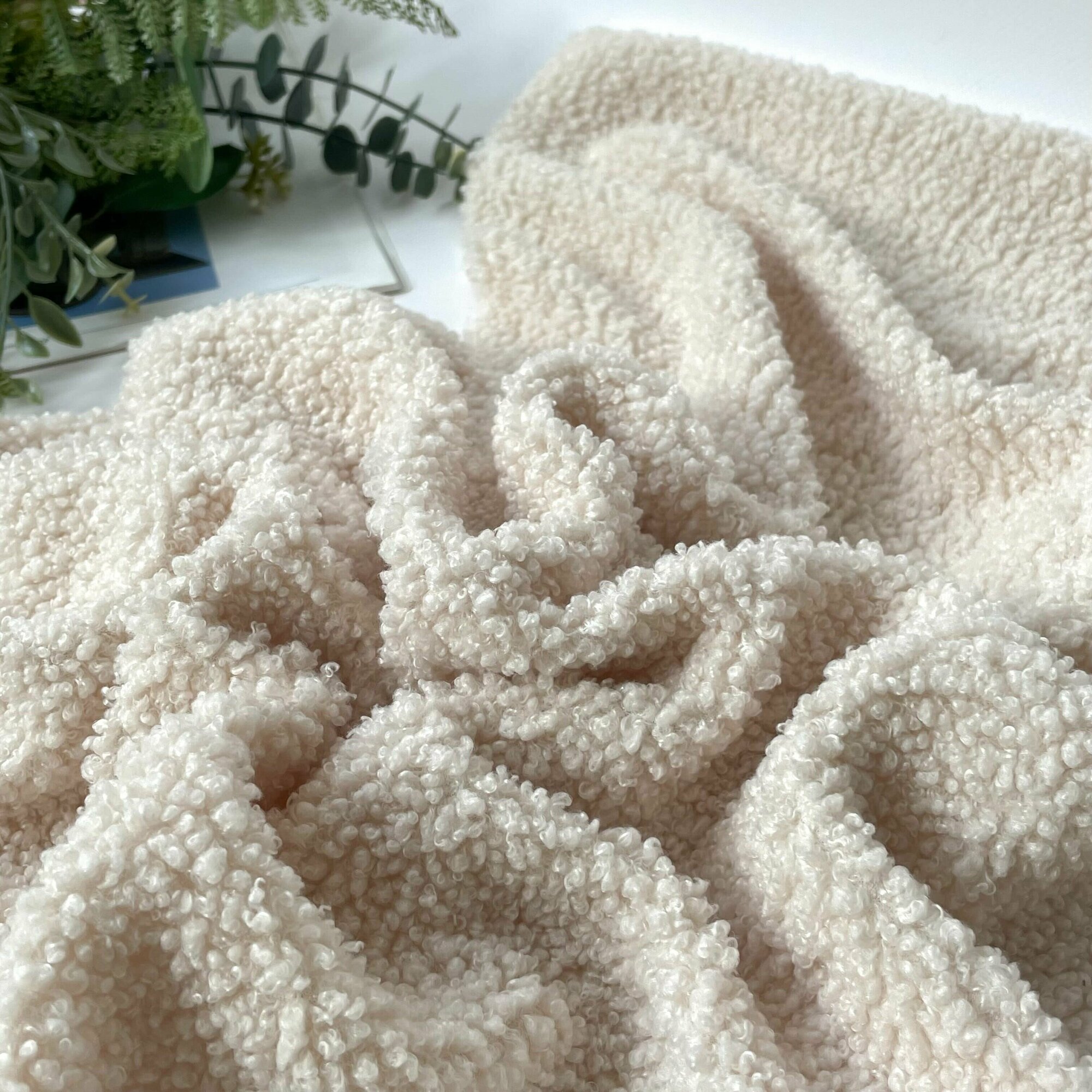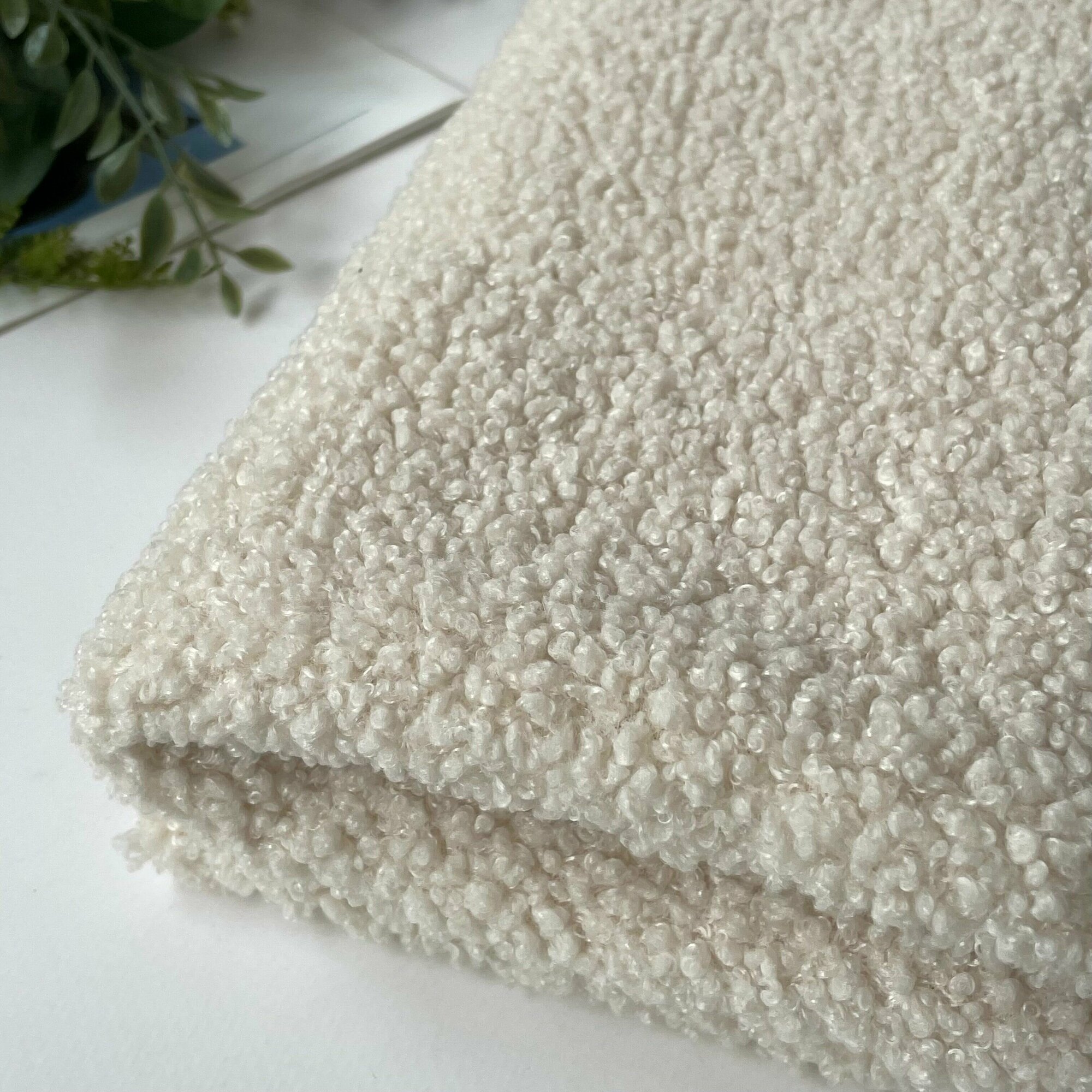 Мех искусственный для игрушек, кудрявый, ткань букле, большой отрез 100*150 см, цвет Сливочный, 100 п/э.
